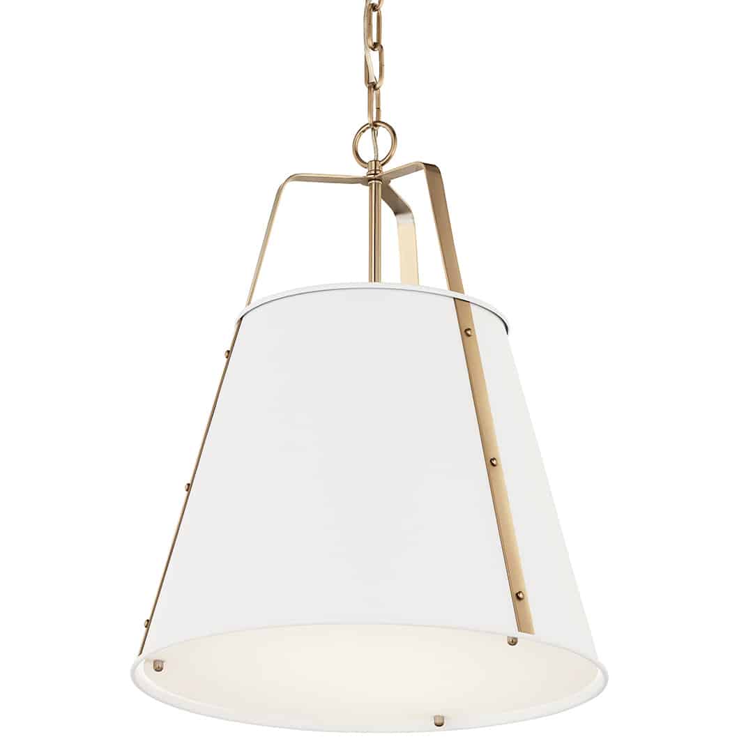Suspension Etcher de 18 pouces à 2 lumières avec diffuseur en verre blanc peint gravé en blanc et bronze champagne