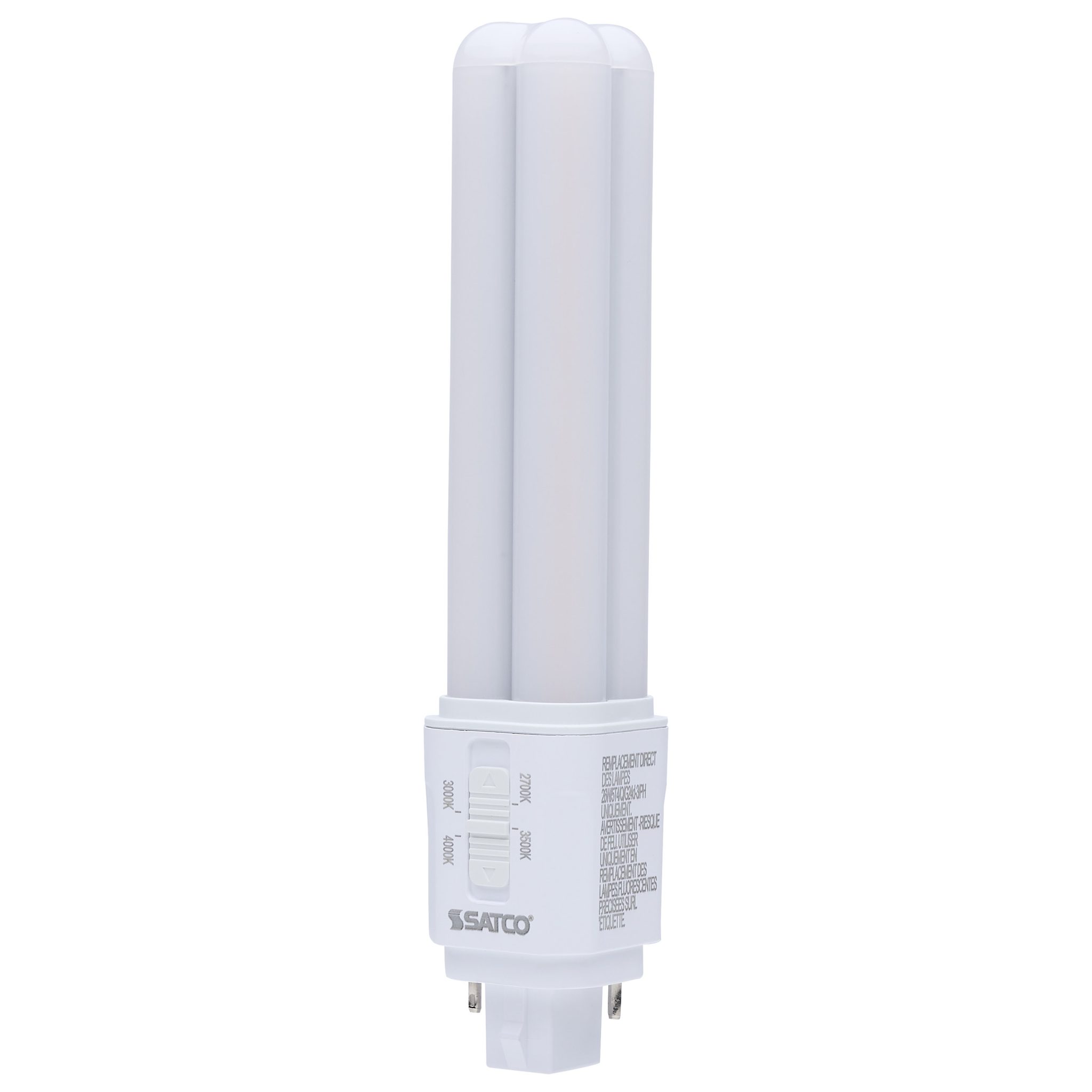 Les lampes LED de remplacement innovantes de SATCO NUVO offrent une solution efficace pour moderniser vos luminaires CFL de 18 W, 26 W ou 32 W et bénéficier des avantages énergétiques de la technologie LED. Compatibles avec trois types de ballasts différents, elles s’adaptent à votre installation existante. Les lampes de type A/B et de type A sont idéales pour remplacer les anciennes CFL sans recâblage, tandis que les lampes de type B conviennent parfaitement aux installations sans ballast. Disponibles avec deux types de culot (G24q à 4 broches et G24d à 2 broches) et des températures de couleur allant de 2 700 K à 4 000 K, elles permettent d’adapter l’éclairage à différents environnements. Offrant une large gamme de flux lumineux, nos lampes allient polyvalence et durabilité, ce qui en fait un excellent choix pour les espaces résidentiels et commerciaux.