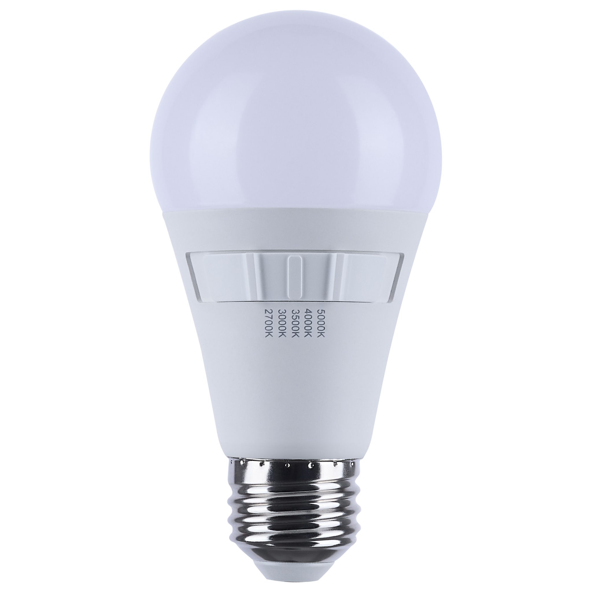 Découvrez l’Ampoule DEL A19 12W, Température de couleur sélectionnable : 27 000 K/3 000 K/35 000 K/4 000 K/5 000 K, Culot moyen, Finition blanche, 120 V