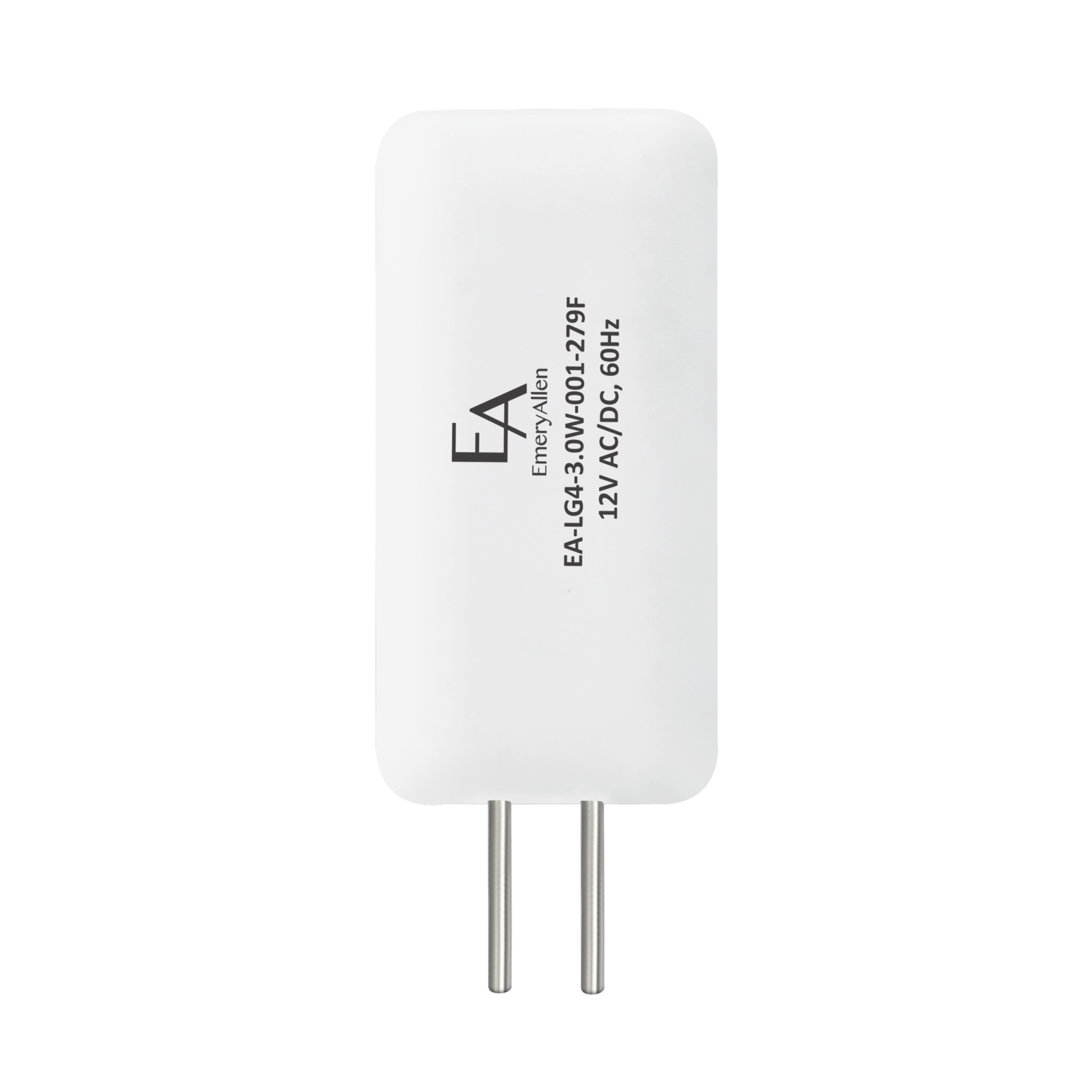 Ampoule de remplacement linéaire G4 3,0 W avec lentille transparente, tension d’entrée 12 V CA/CC, 3,15 W / 345 lumens, IRC > 90, température de couleur 2 700 K Consultez la Fiche Technique Découvrez le modèle LG4-3.0W-001-279F : performance, efficacité et fiabilité signées EmeryAllen. La gamme G4 12 V AC/DC d’EmeryAllen offre un éclairage 360°, un IRC 90+ et une grande efficacité pour les luminaires compacts, appliques et éclairages extérieurs. Achetez en ligne dès maintenant et améliorez instantanément la qualité de votre éclairage.
