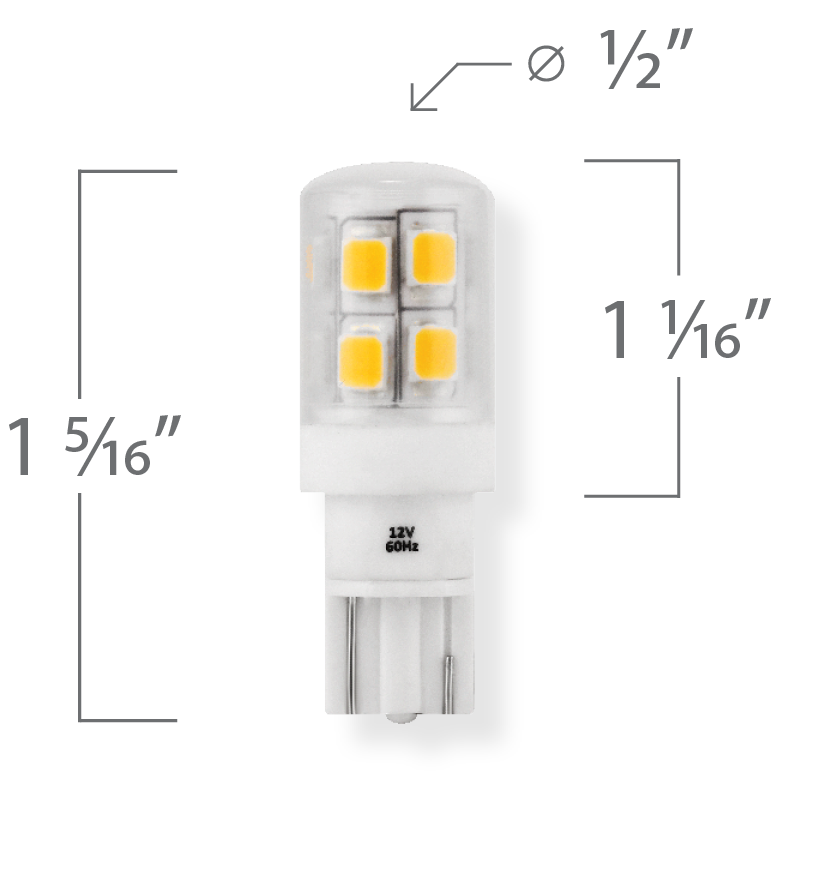 Ampoule miniature de remplacement 1,5 W / T5 / culot à coin avec lentille opérationnelle, tension d’entrée 10-15 V CA/CC, 1,5 W / 150 lumens, IRC > 90, température de couleur 3 000 K