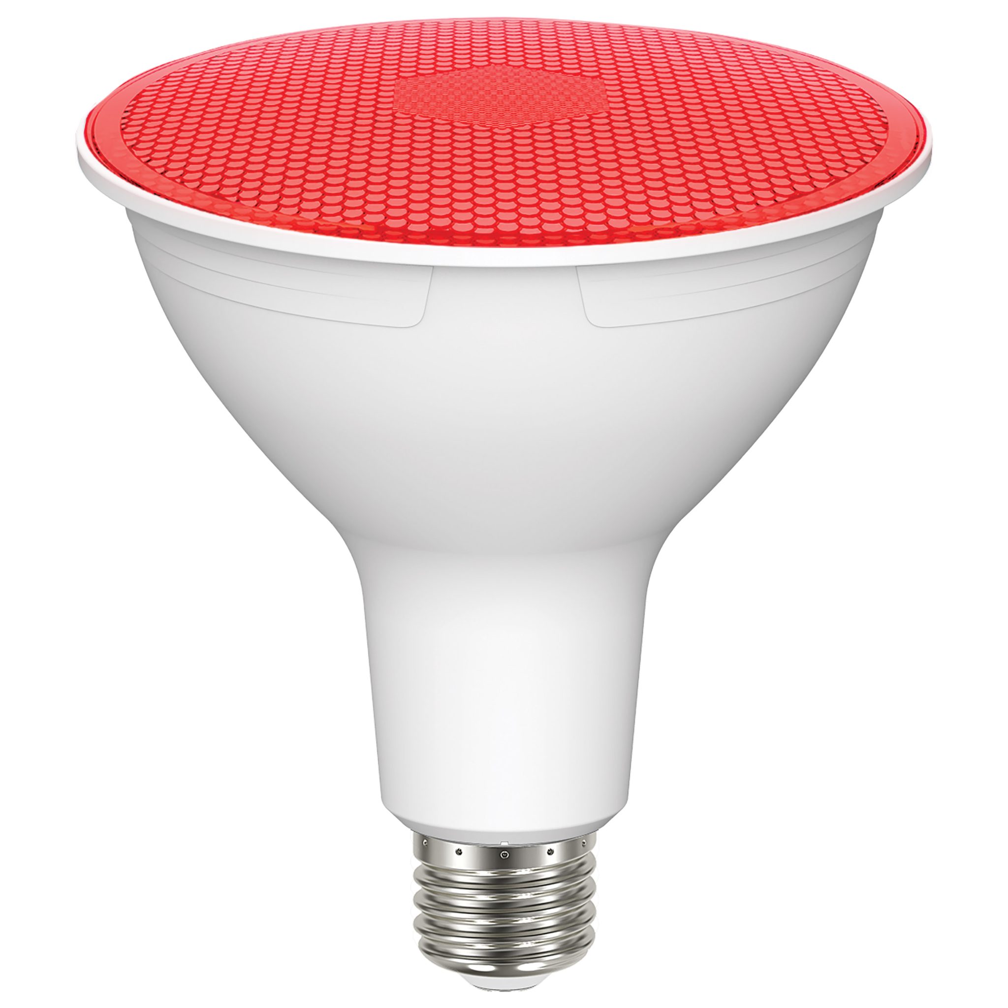 Découvrez l’Ampoule DEL PAR38 11,5W, Rouge, Angle de faisceau 90°, Culot moyen, 120V