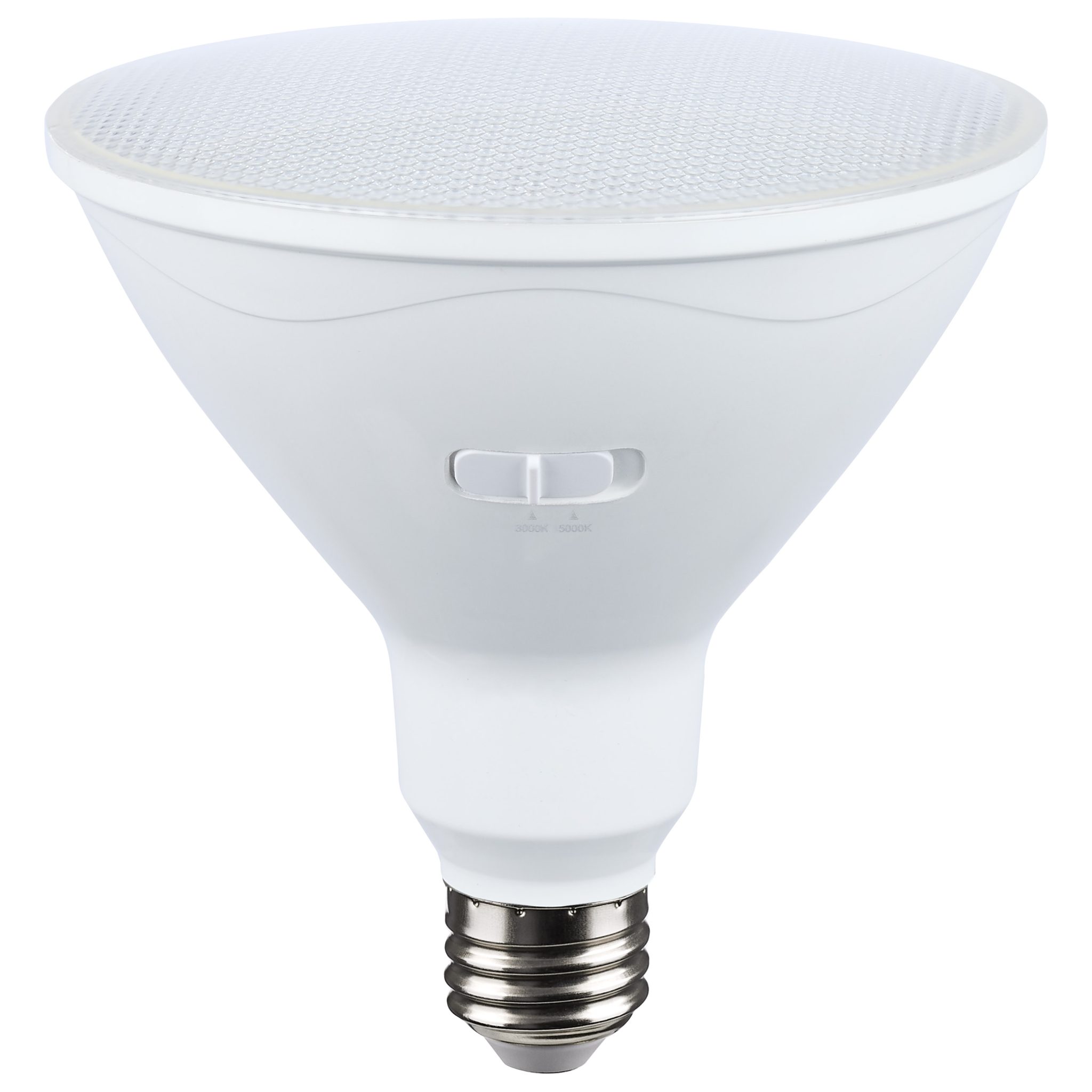 Découvrez l’Ampoule DEL PAR38 25W, Température de couleur sélectionnable 3000K/5000K, Flux lumineux élevé, Culot moyen, Finition blanche, 120V