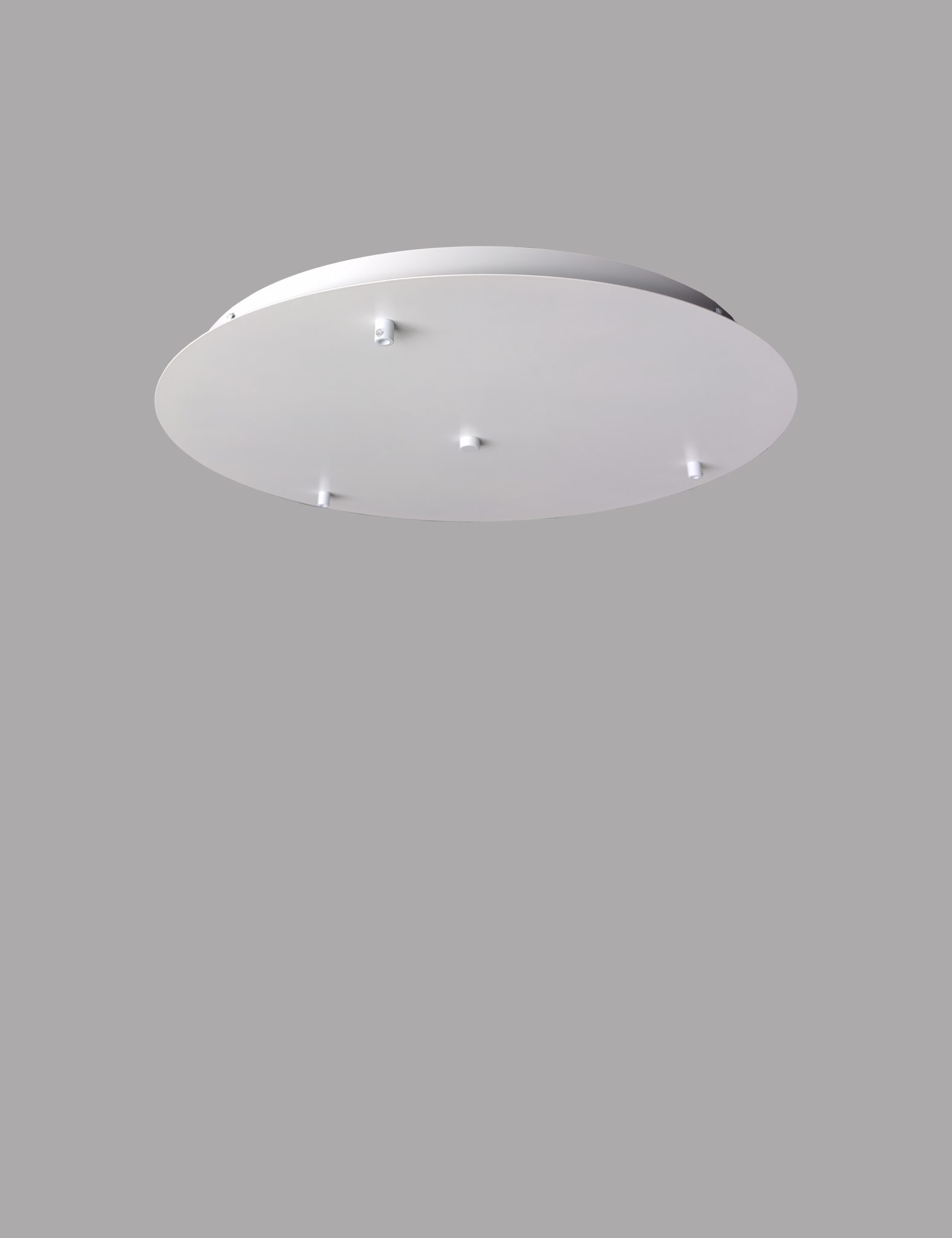 Découvrez le Canopé rond fini blanc avec 3 trous pour s’adapter à 3 suspensions simples, 24po Diamètre