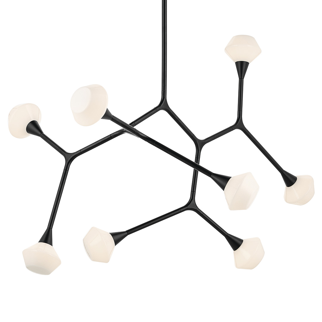Découvrez le Lustre convertible Cassius 52,5 pouces en verre opale noir, 8 lumières