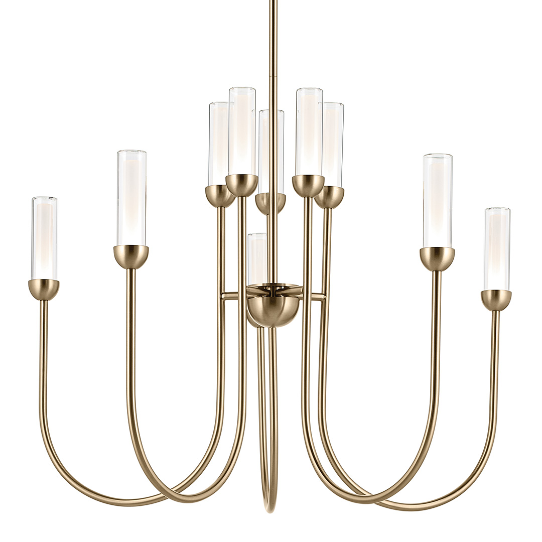 Découvrez le Lustre Moraine 30 pouces à DEL, 10 lumières, 2 niveaux, couleur bronze champagne