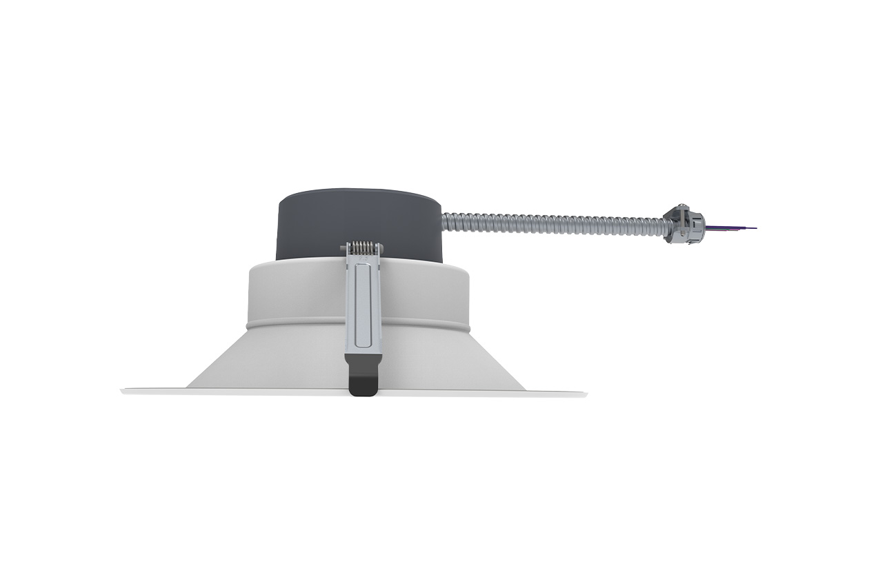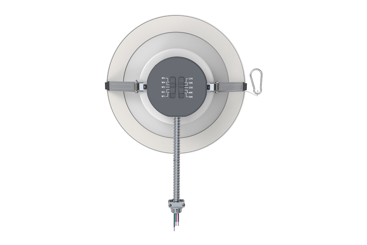 Découvrez le CDL03, Spot encastré commercial, 25 cm, 20/24/28/32/38 W, 27/30/35/40/5 000 K, 120-347 V, gradation 0-10 V/Triac/ELV, blanc, garantie 5 ans
