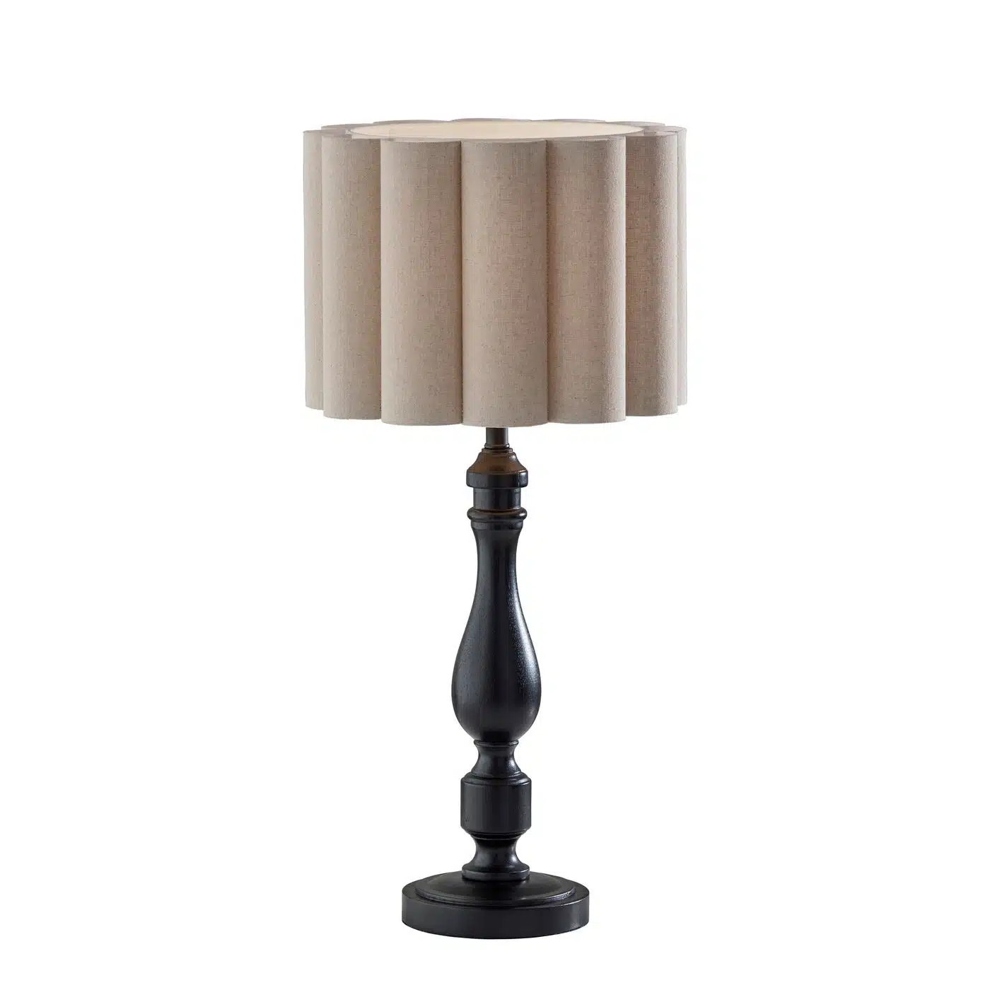 Découvrez CLARET Lampe de table, fini bois noir avec abat-jour en tissu texturé crème festonné 3 intensités, 26,5po Hauteur, 12,75po Largeur, 100W E26