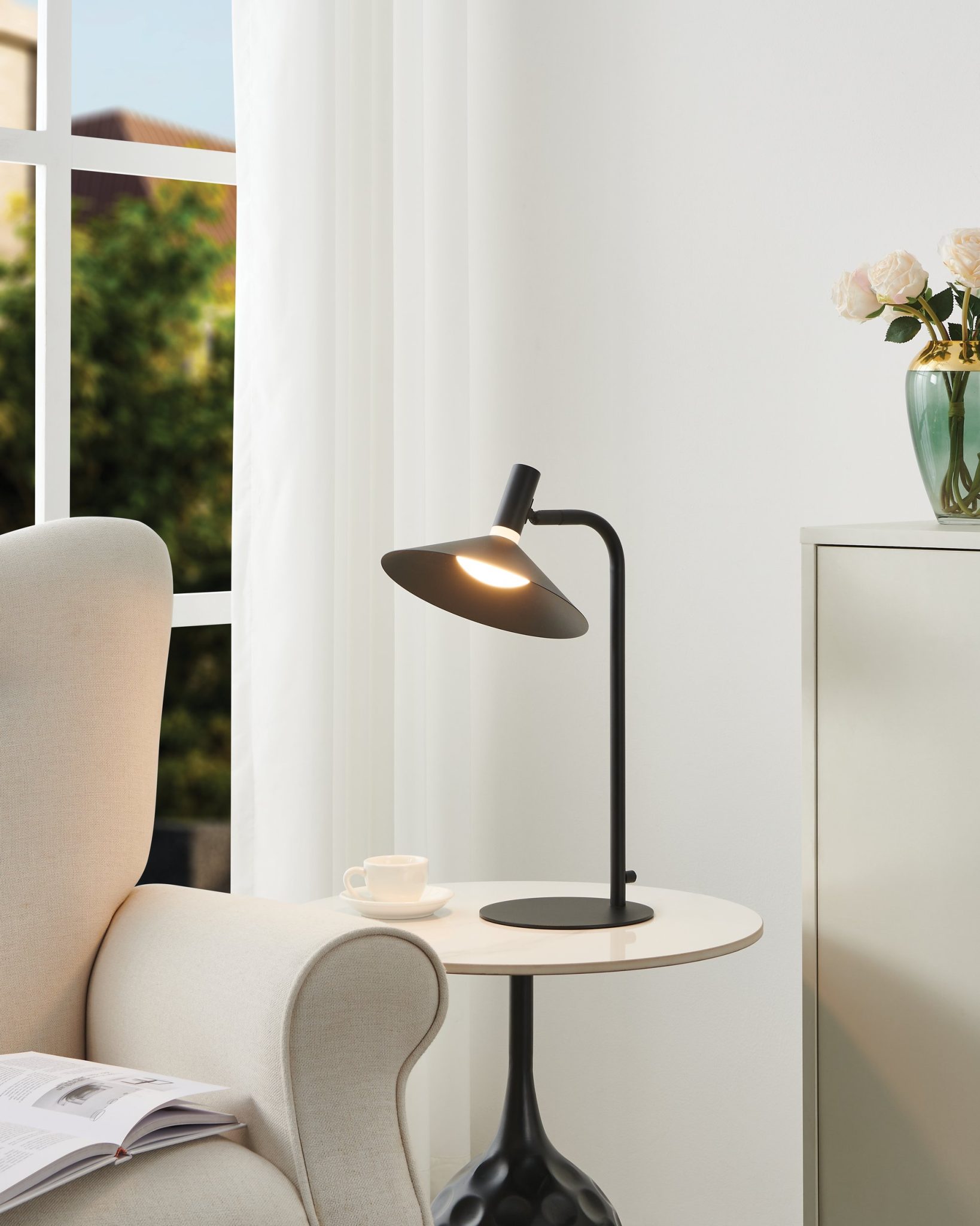 Le Conomavilla apporte une touche audacieuse à la table, redéfinissant la lampe de travail traditionnelle avec une allure industrielle moderne. Cette lampe de table DEL de 18 pouces est dotée d’un abat-jour en métal noir saisissant qui diffuse un éclairage dirigé vers le bas, tandis que l’anneau DEL intégré distinctif, positionné juste au-dessus de l’abat-jour, crée un effet halo doux et sophistiqué. Équipée de la technologie DEL 3CCT, elle permet d’ajuster facilement la température de couleur à l’aide de l’interrupteur tactile, passant d’une lumière ambiante chaleureuse idéale pour la lecture à une lueur claire et plus froide pour le travail. Avec sa silhouette épurée et son éclairage bidirectionnel, cette lampe constitue une pièce à la fois fonctionnelle et artistique pour un bureau, une table d’appoint ou une table de chevet.