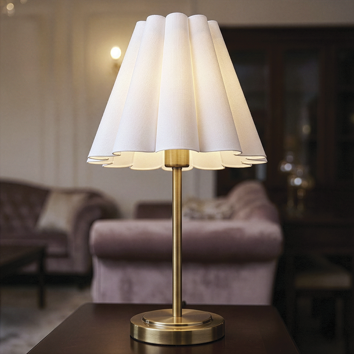 La lampe de table IRIS à une lumière allie style contemporain et charme d’inspiration vintage, s’intégrant harmonieusement aux intérieurs modernes comme aux espaces de style transitionnel. Sa structure dorée se marie à un abat-jour en tissu blanc doux, créant un style qui mêle sophistication intemporelle et subtiles touches victoriennes. D’une hauteur de 59 cm, IRIS apporte une touche d’élégance verticale, diffusant une lumière chaude et accueillante qui sublime l’atmosphère raffinée d’une pièce. Idéale pour créer des compositions lumineuses originales ou des éclairages superposés, elle trouve parfaitement sa place sur une table de chevet ou comme lampe d’appoint dans un couloir ou un salon. Son élégant abat-jour blanc assure un éclairage équilibré grâce à une ampoule de type A de 60 W. Par son mélange de simplicité moderne et d’influence vintage, IRIS sublime les intérieurs par un jeu subtil de superpositions, de charme et de luxe discret.