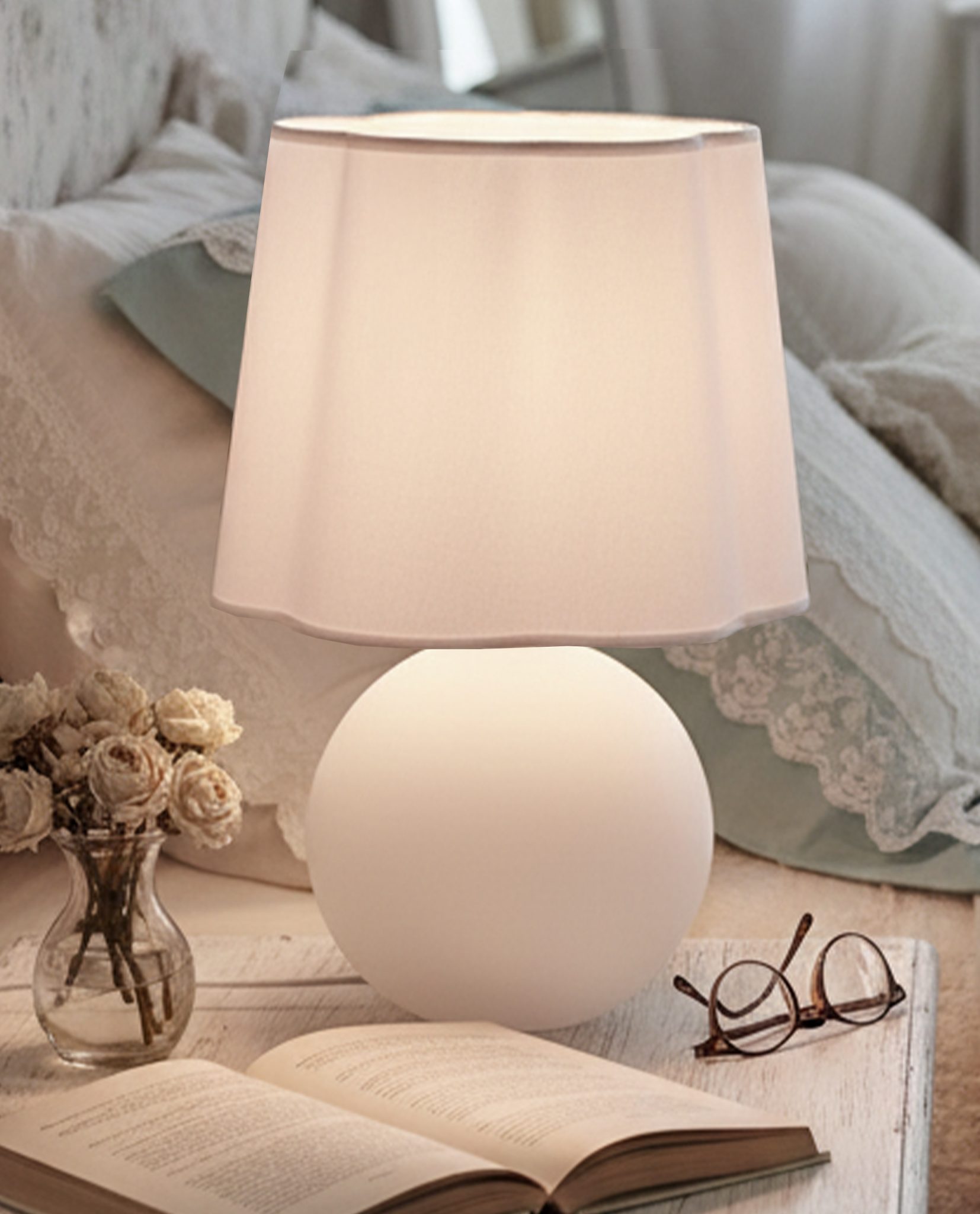 La lampe de table MELINA incarne une simplicité discrète avec son pied blanc doux et son abat-jour en tissu délicatement festonné. Son design épuré et moderne apporte lumière et équilibre à tout espace, offrant une esthétique à la fois naturelle et raffinée. Mesurant 27 cm de large sur 44,5 cm de haut, elle est idéale pour les tables de chevet, les guéridons ou les coins lecture. L’interrupteur rotatif apporte une touche de fonctionnalité classique, tandis que la finition entièrement blanche lui confère un style frais et intemporel. Conçue pour une ampoule de type A de 60 W, MELINA diffuse une lumière douce et apaisante qui sublime votre intérieur d’une élégance décontractée.