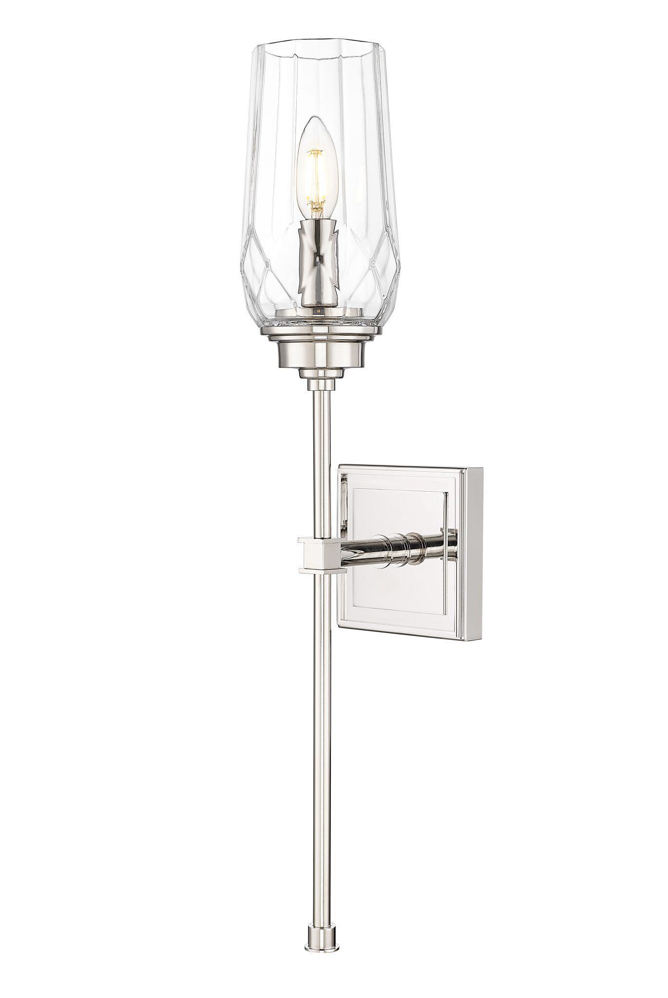Cette applique murale de style transitionnel, dotée d’un abat-jour en verre à motif diamant unique, arbore un design exceptionnel jusque dans les moindres détails. Sa finition en nickel poli scintille sous la lumière, lui conférant profondeur et raffinement. Le biseautage de sa plaque murale souligne le relief, tandis que son abat-jour élancé abrite une ampoule de type candélabre, créant une ambiance chaleureuse dans n’importe quel espace.