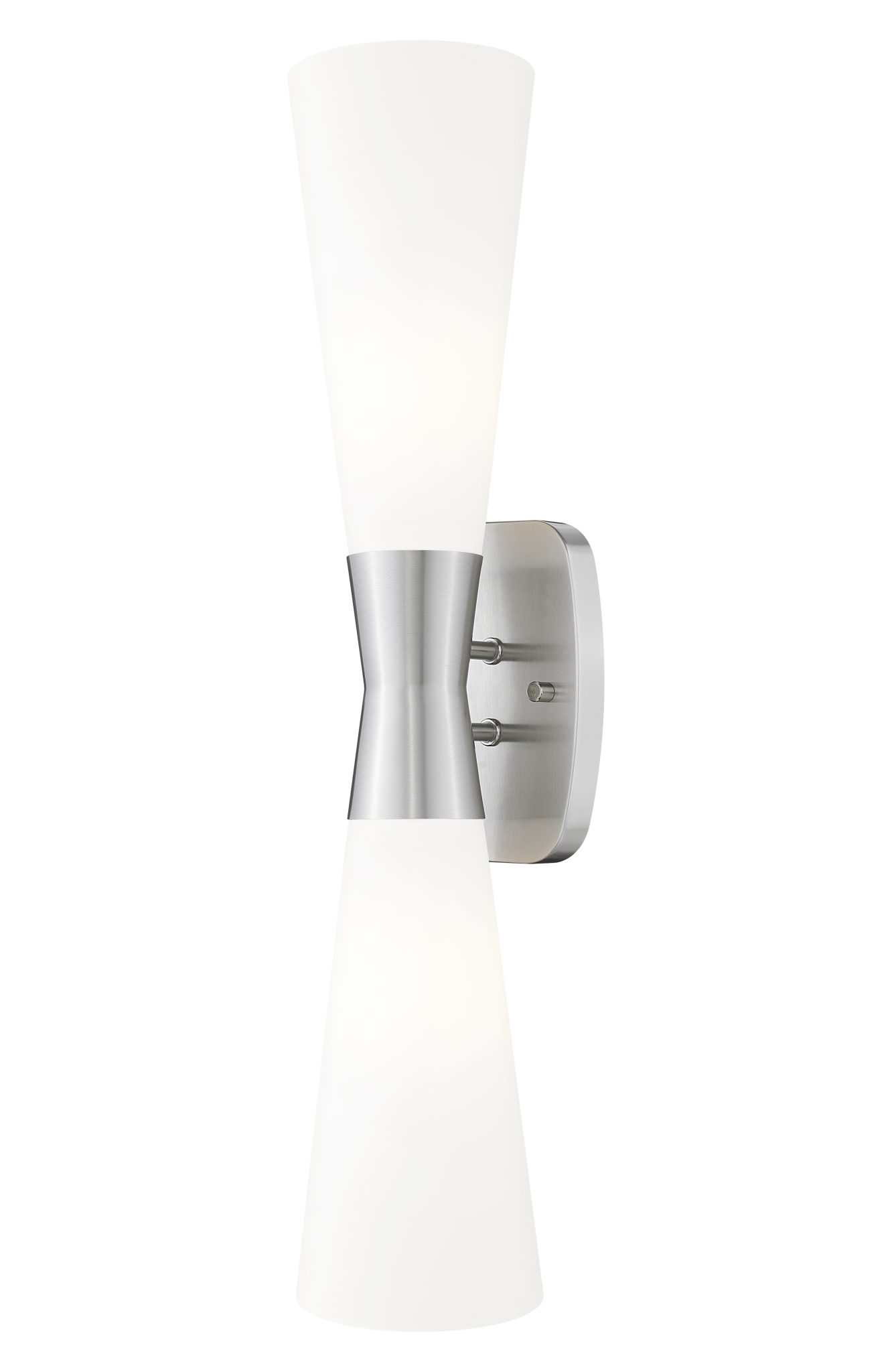 Avec sa silhouette élégante de sablier, cette applique murale à deux lumières est à la fois séduisante et discrète, idéale pour les salons, les couloirs et les salles à manger. Sa structure en acier finition nickel brossé comprend un centre resserré soutenant des abat-jour en verre opale mat inversés, diffusant la lumière vers le haut et vers le bas. Adaptez l’éclairage à vos besoins ou créez l’ambiance souhaitée grâce à sa fonction de variation d’intensité intégrée.