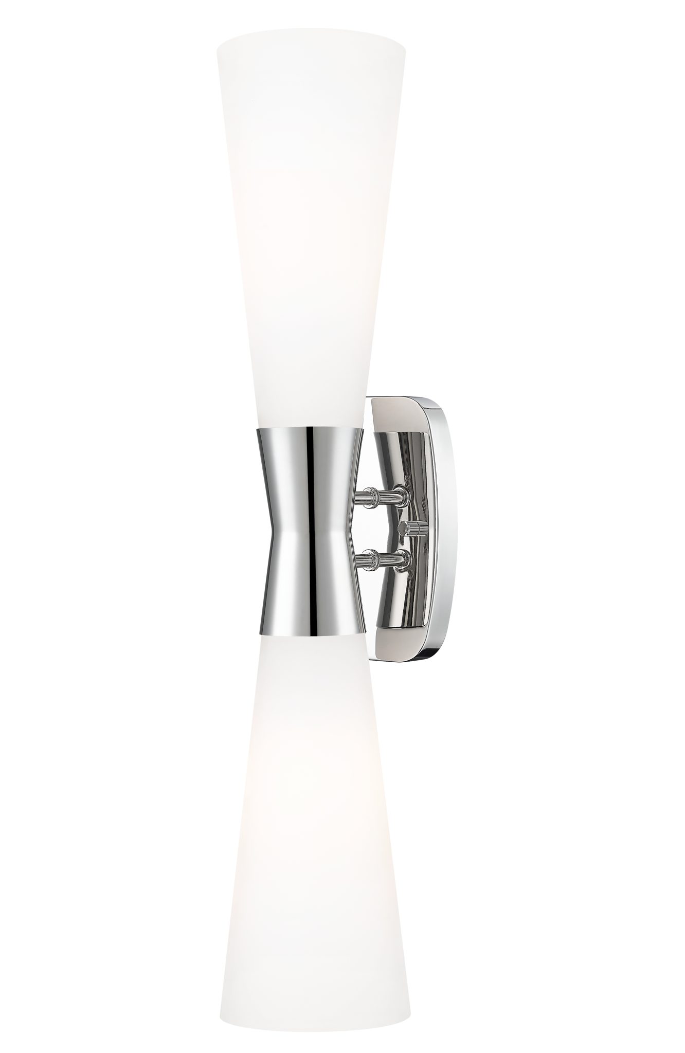 L’applique murale à deux lumières, alliant verre et métal, offre un style polyvalent, à la fois élégant et chic : un mariage classique qui s’harmonise avec tous les espaces. Ce luminaire est doté d’une structure en acier finition nickel poli, comprenant un support central resserré et une plaque murale aux lignes élégantes. Les abat-jour coniques en verre opale mat inversé apportent une touche raffinée à ce design classique, diffusant une lumière à intensité variable pour créer une ambiance lumineuse ou personnaliser l’éclairage selon les besoins.