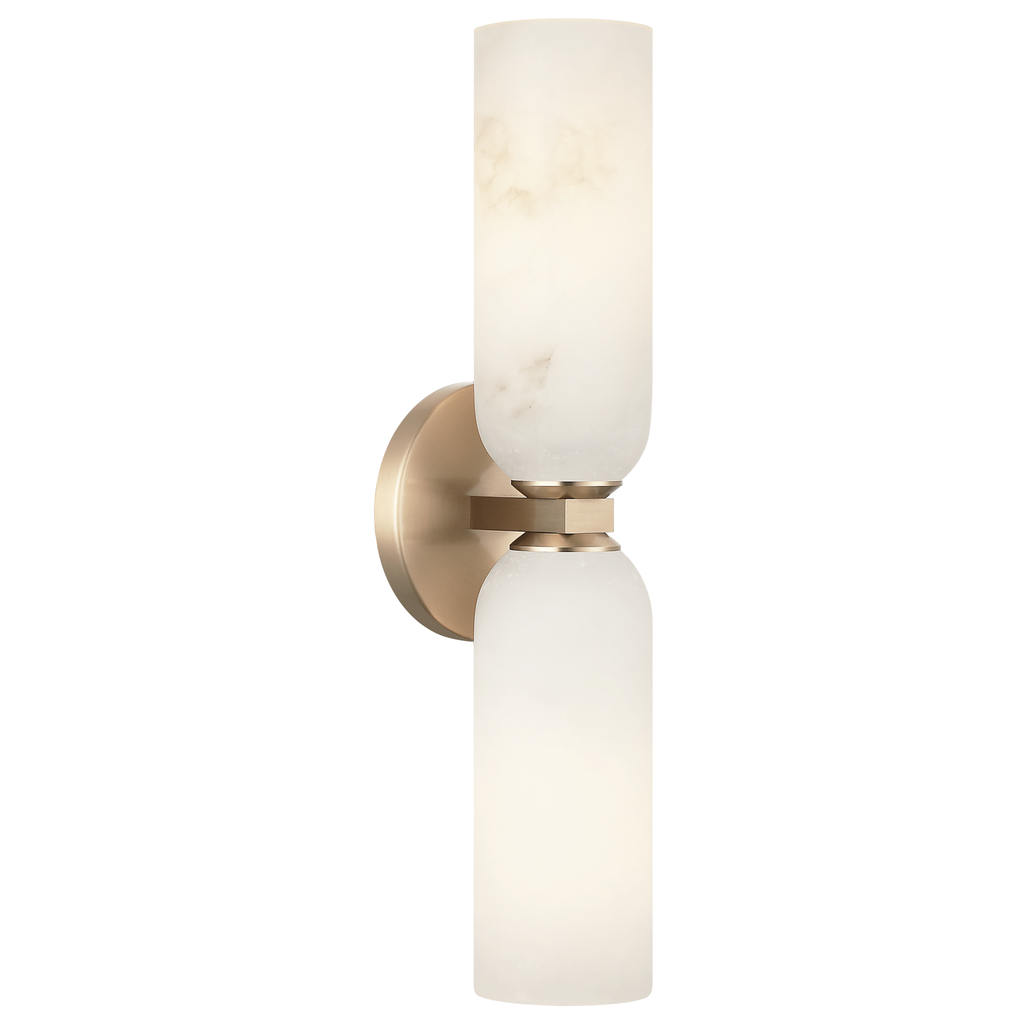 Jules. Sublimez votre espace avec cette applique murale de style transitionnel, caractérisée par sa silhouette verticale saisissante et ses abat-jour en albâtre à la douce lumière. Les plaques arrière noir mat et or champagne offrent un contraste audacieux, tandis que les veines naturelles de l’albâtre diffusent une lueur chaleureuse et accueillante. Idéale pour les couloirs, les salles de bains et les pièces à vivre modernes, cette applique apporte une présence sculpturale et un éclairage d’ambiance harmonieux. En raison des caractéristiques naturelles de l’albâtre, des variations de couleur et de motif peuvent survenir. AMPOULES NON INCLUSES