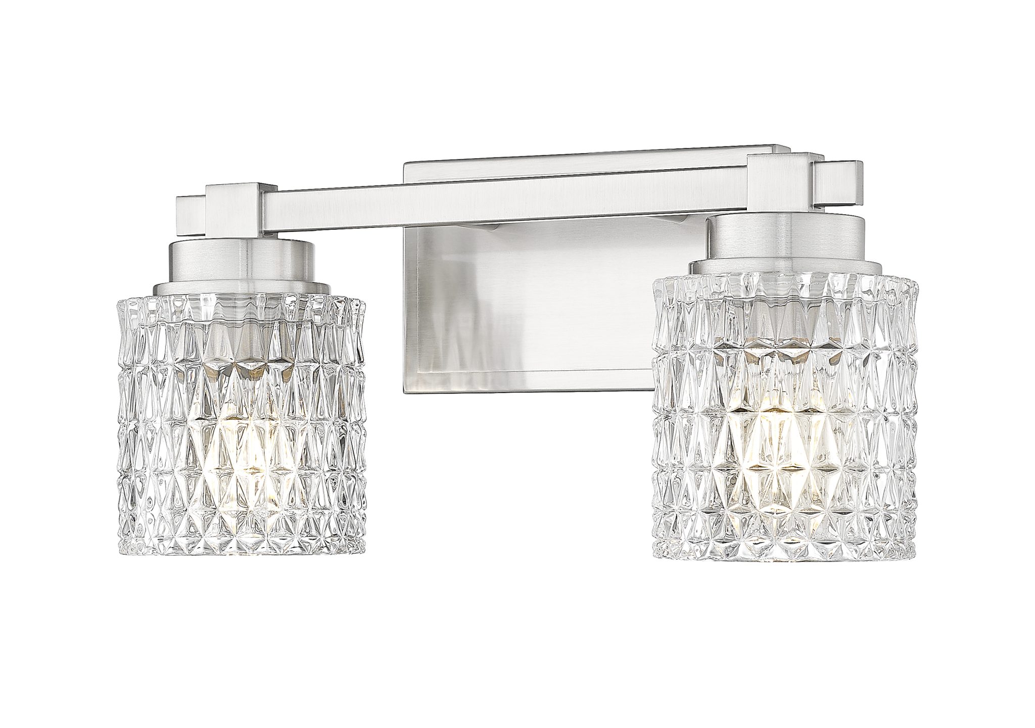 Le motif en losange taillé en cristal apporte une texture raffinée aux abat-jour de cette applique à deux lumières, un ajout luxueux aux salles de bains et aux espaces de vie extérieurs. Son style intemporel se caractérise par des détails subtils sur une structure en acier finition nickel brossé, offrant polyvalence et élégance indémodable. Ajustez l’intensité lumineuse selon vos besoins ou créez une ambiance chaleureuse.