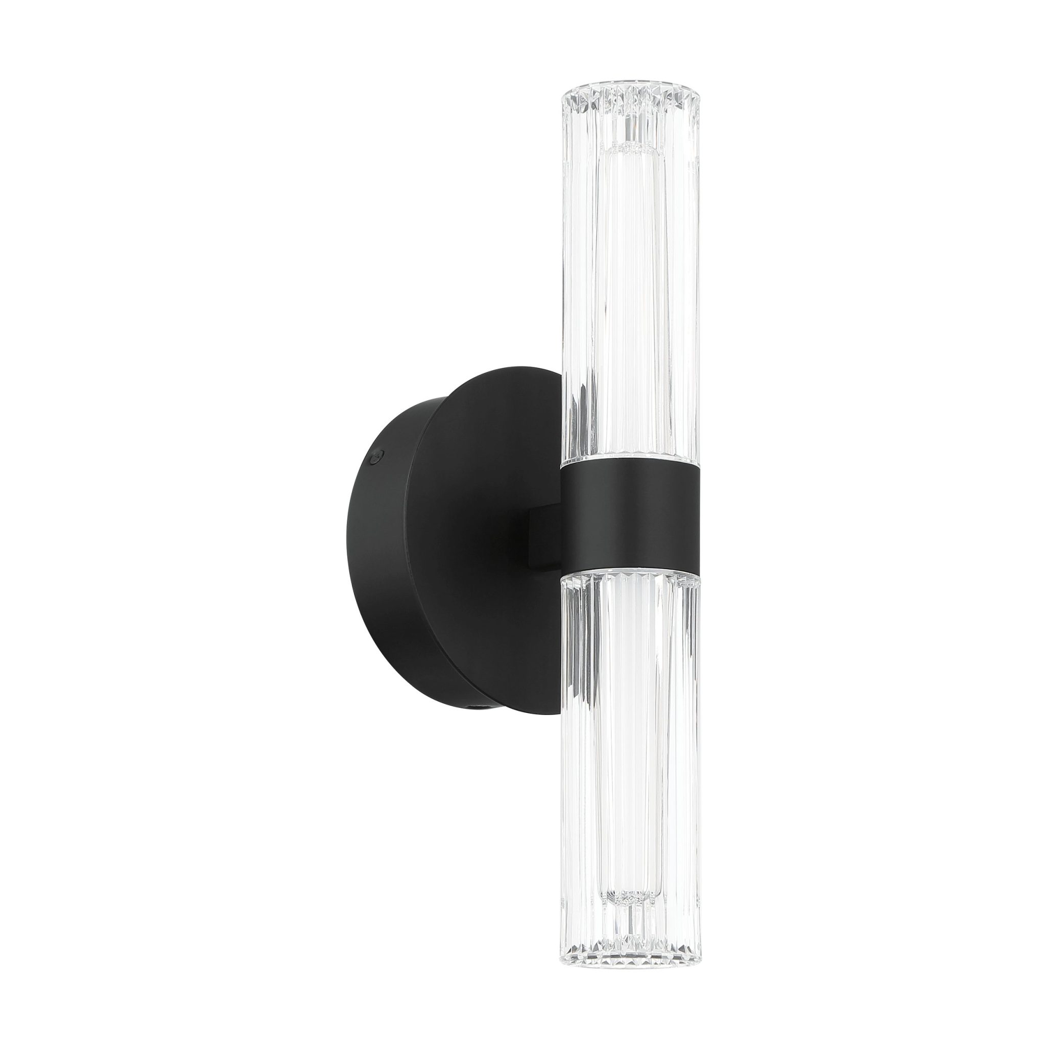 Découvrez Ristretto murale DEL 13 po à 2 lumières noir mat avec abat-jours en acrylique clair nervuré et blanc