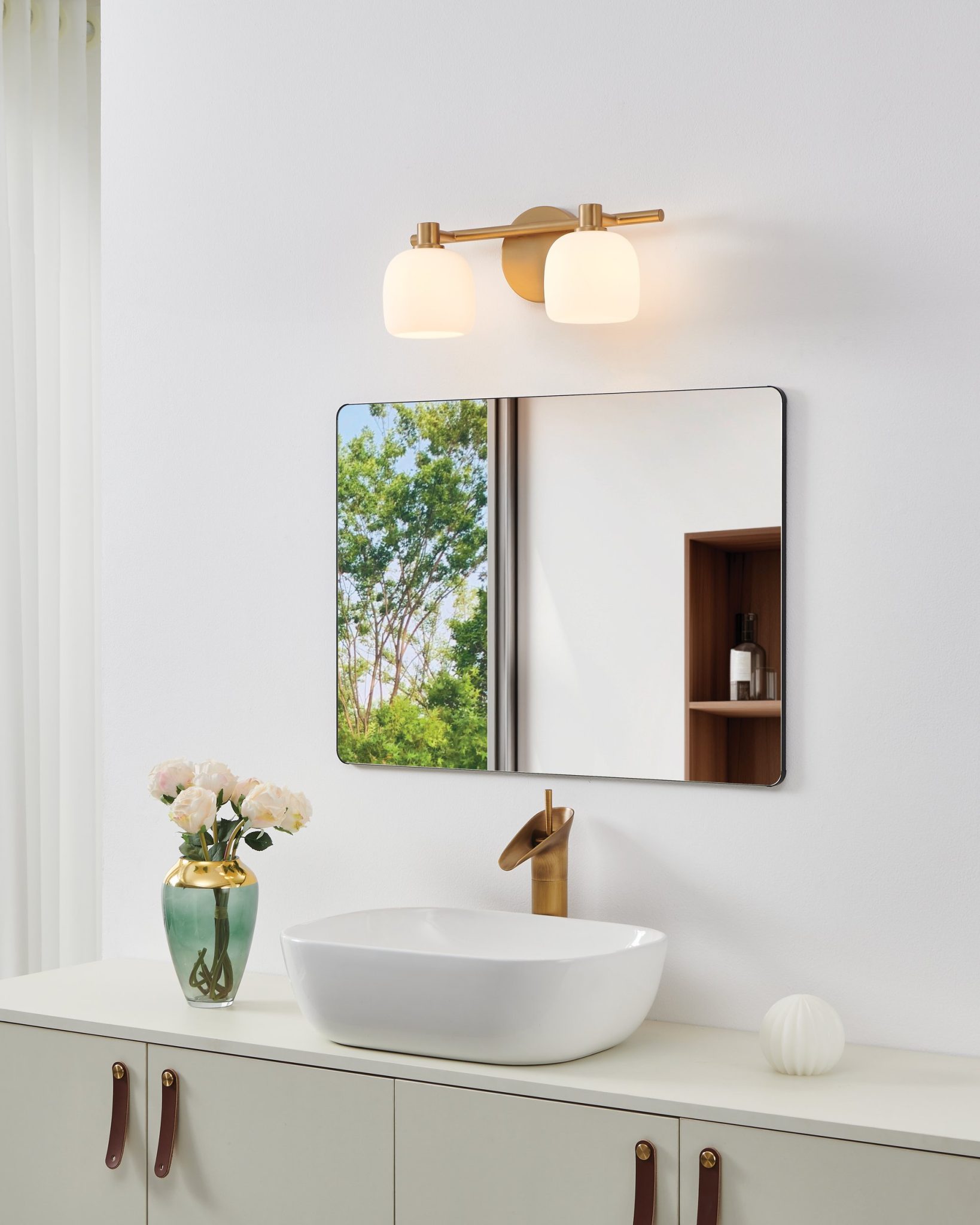 Découvrez Valentina murale de salle de bain 15 po à 2 lumières or champagne avec abat-jours en verre opale gravé