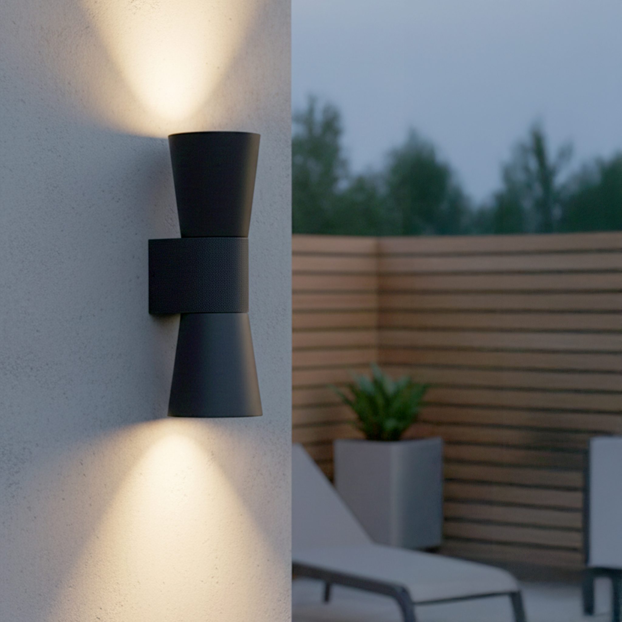 Découvrez RAMI, Murale extérieure éclairage haut et bas couleur Sable Noir de Canarm