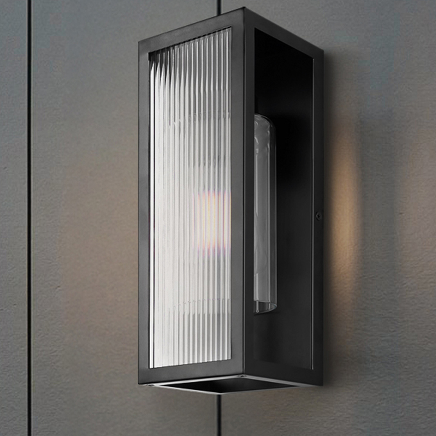 L’applique murale extérieure HARDY insuffle une touche de luxe moderne à son élégant cadre noir mat et à sa conception innovante à double vitrage. Vue de face, une plaque de verre nervurée définit le style, ajoutant texture et profondeur. De profil, un cylindre intérieur en verre transparent plus petit révèle l’ampoule, créant un jeu de superpositions à la fois sophistiqué et architectural. Mesurant 13 cm de large sur 33 cm de haut, ce luminaire à une lumière est parfaitement proportionné pour s’intégrer harmonieusement aux entrées, terrasses ou garages. Le verre nervuré adoucit la lumière, tandis que le verre intérieur la maintient vive et moderne. Durable et raffinée, HARDY transforme l’éclairage extérieur en un élément de design résolument contemporain.