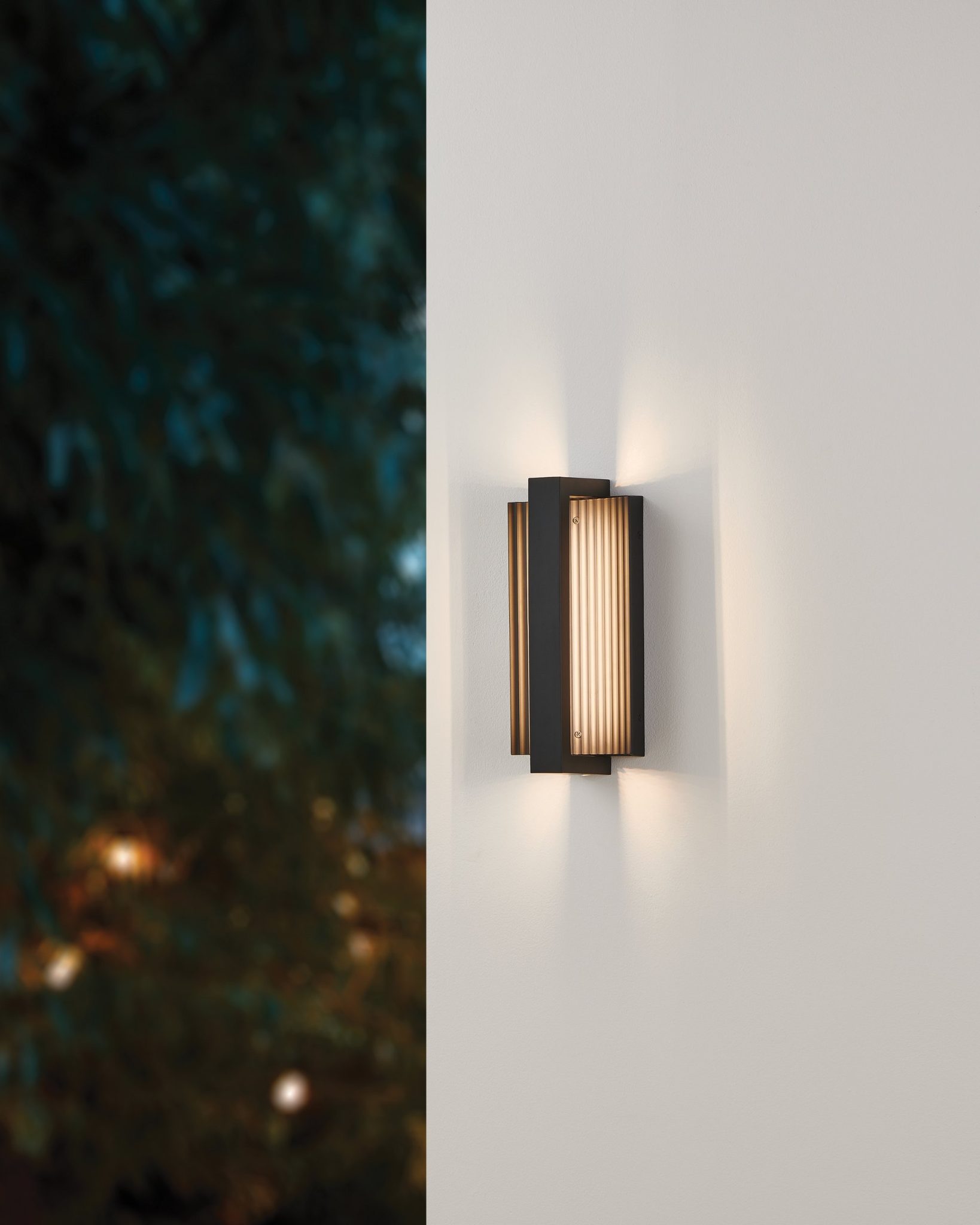 La murale extérieure Jubilee en noir mat transforme la lumière en véritable sculpture fonctionnelle. Un réflecteur en métal nervuré se courbe délicatement derrière une barre angulaire élancée, là où texture et lumière se rencontrent en parfaite symbiose. Les DEL 5CCT intégrées projettent la lumière vers l’arrière et la renvoient vers l’avant, créant une lueur douce et sophistiquée qui met en valeur tout espace extérieur.