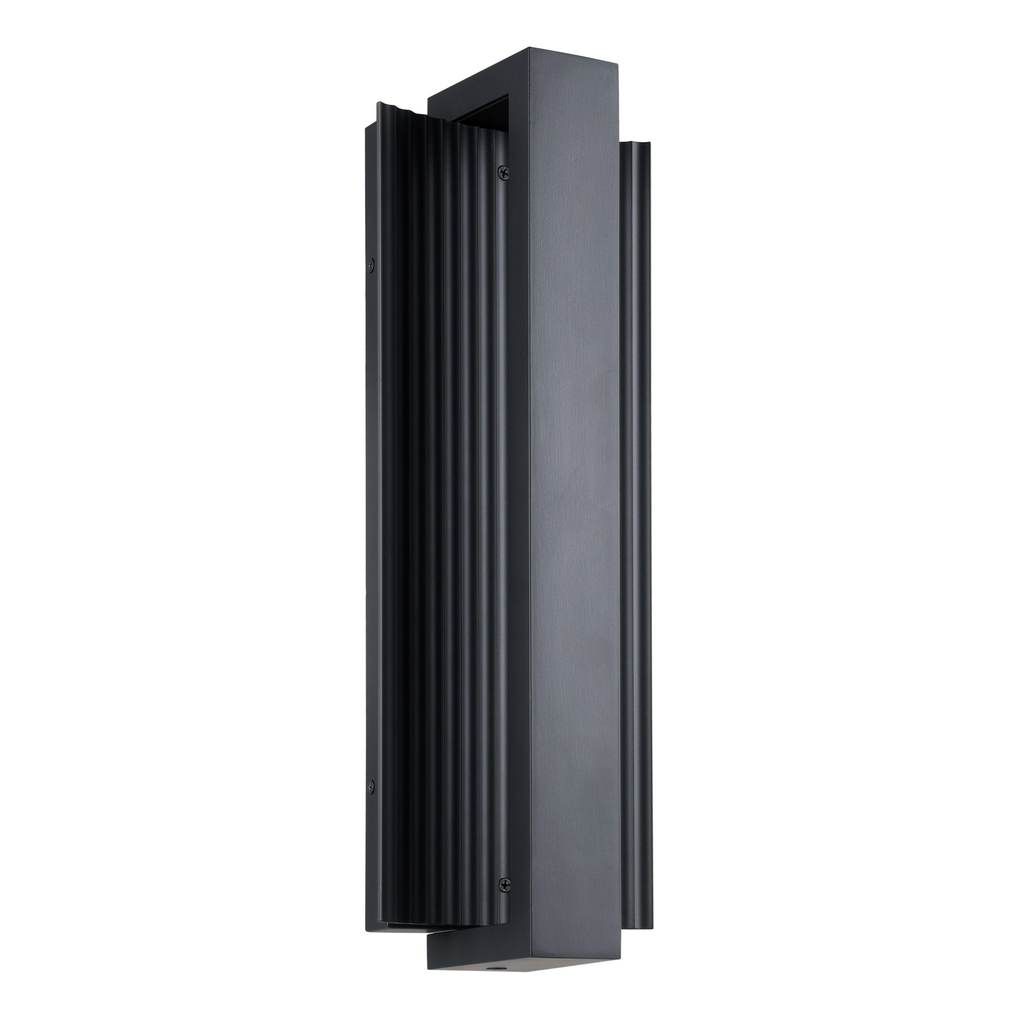 La murale extérieure Jubilee en noir mat transforme la lumière en une pièce sculpturale résolument contemporaine. Un réflecteur en métal nervuré se courbe avec finesse derrière une barre angulaire élancée, là où texture et lumière se répondent avec justesse. Les DEL 5CCT intégrées diffusent la lumière vers l’arrière puis la réfléchissent vers l’avant, créant une lueur douce et sophistiquée qui rehausse le cachet architectural de toute façade moderne.