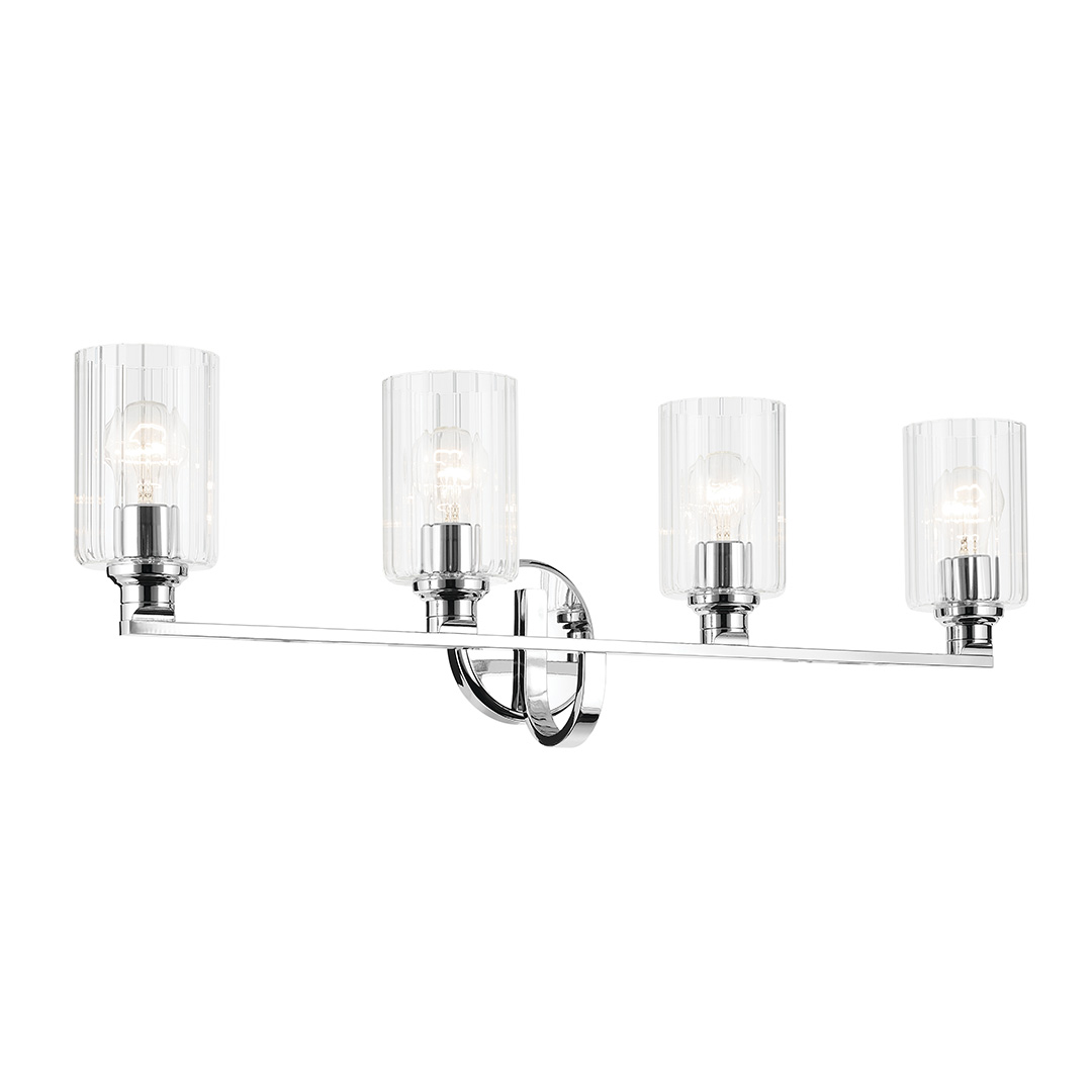 Découvrez l’Applique murale Gioe 32,25 pouces à 4 lumières avec verre cannelé transparent chromé