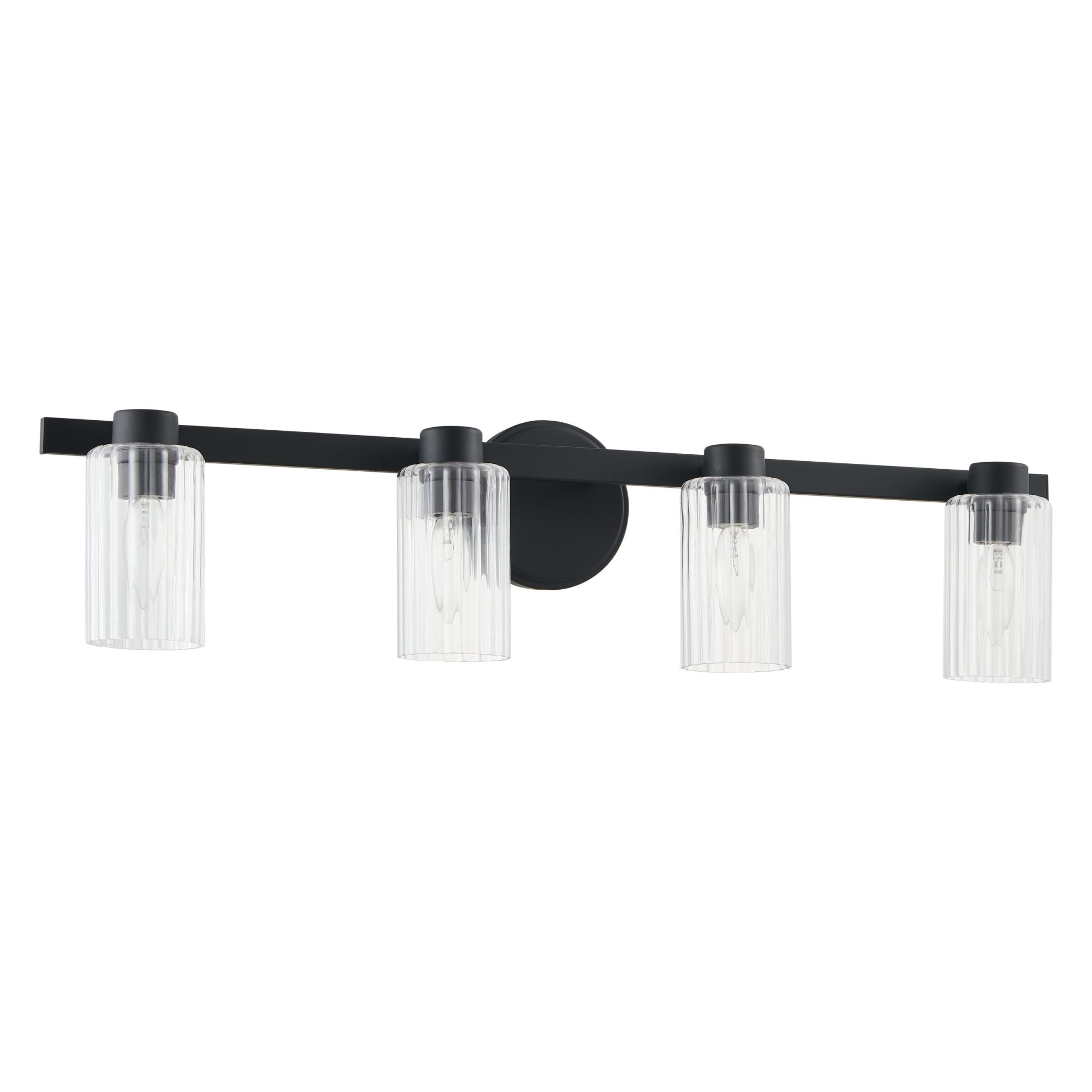 Découvrez Bedminster murale de salle de bain 30 po à 4 lumières noir mat avec abat-jours en verre clair nervuré
