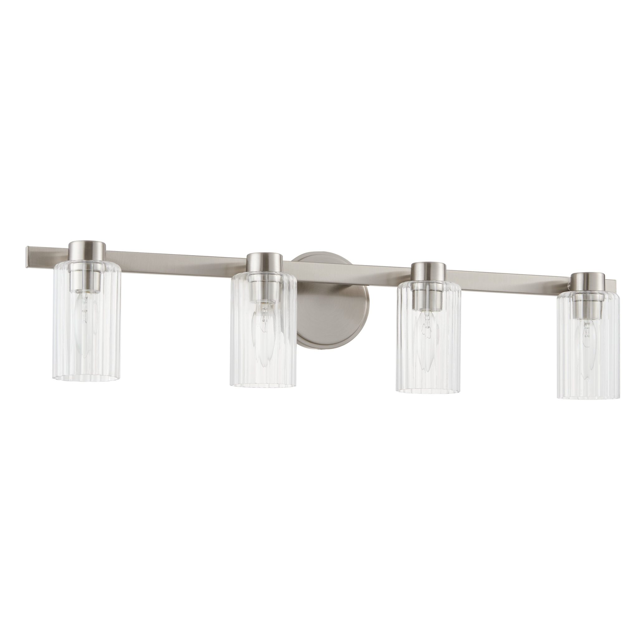 Découvrez Bedminster murale de salle de bain 30 po à 4 lumières nickel brossé avec abat-jours en verre clair nervuré