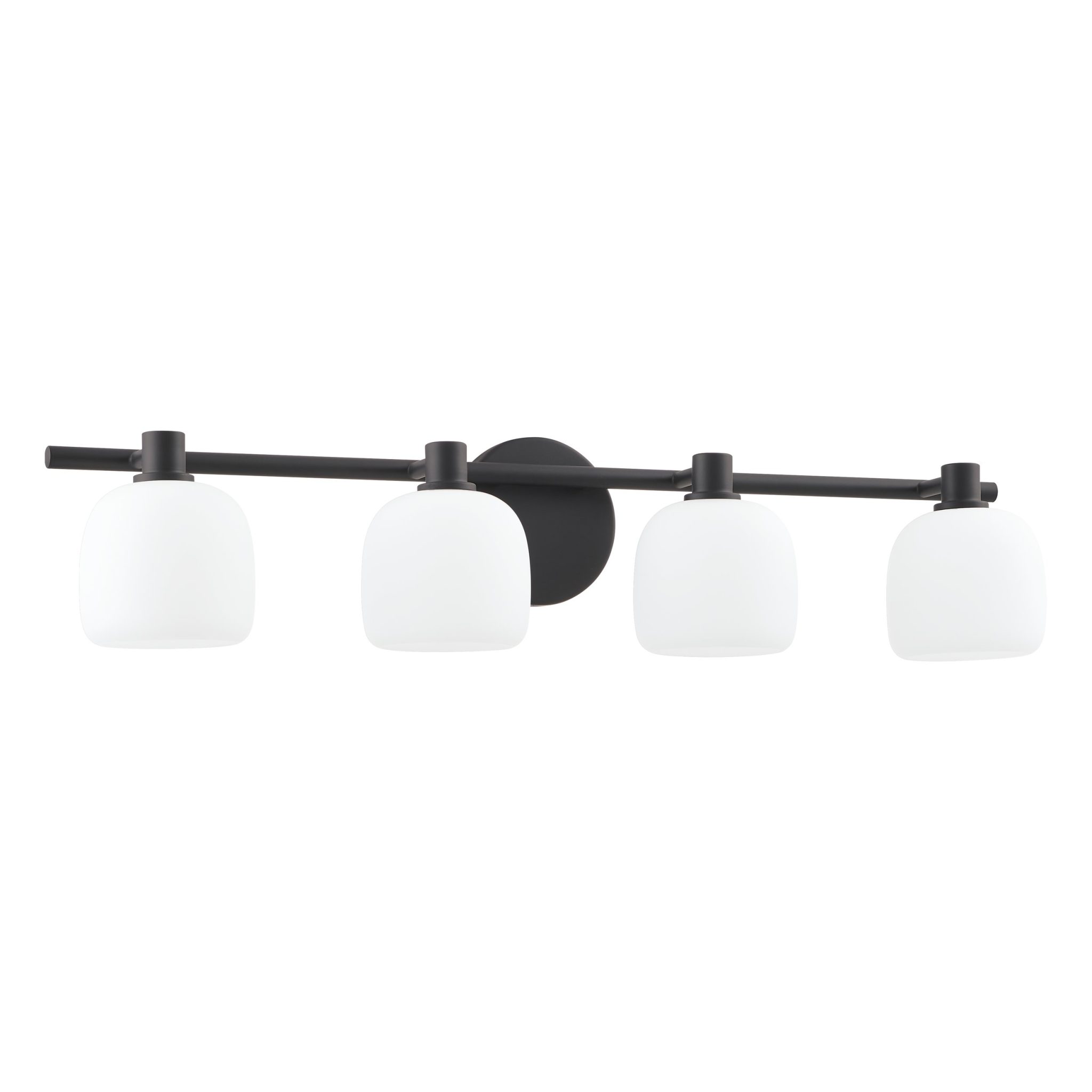 Découvrez Valentina murale de salle de bain 30 po à 4 lumières noir mat avec abat-jours en verre opale gravé