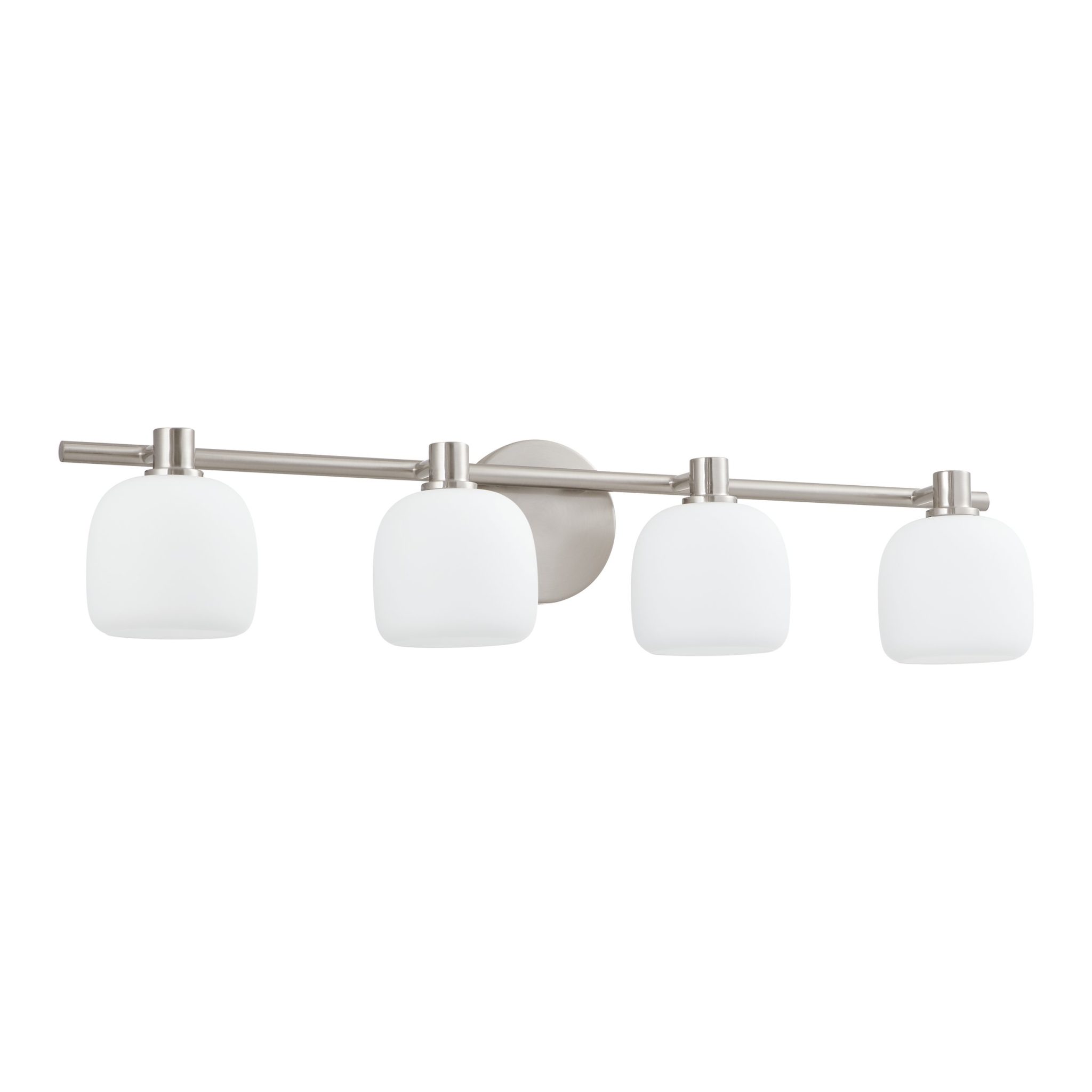 La collection de murales de salle de bain Valentina en nickel brossé, au style accueillant, met en scène des abat-jours arrondis en verre opale gravé, associés à un bras en métal simple mais affirmé. L’équilibre harmonieux de cette murale de salle de bain à quatre lumières se décline dans une vaste gamme de combinaisons de verre et de métal pour s’adapter à chaque projet. La finition nickel brossé apporte une présence intemporelle et raffinée, insufflant une élégance discrète à toute salle de bain ou espace de salle d’eau.