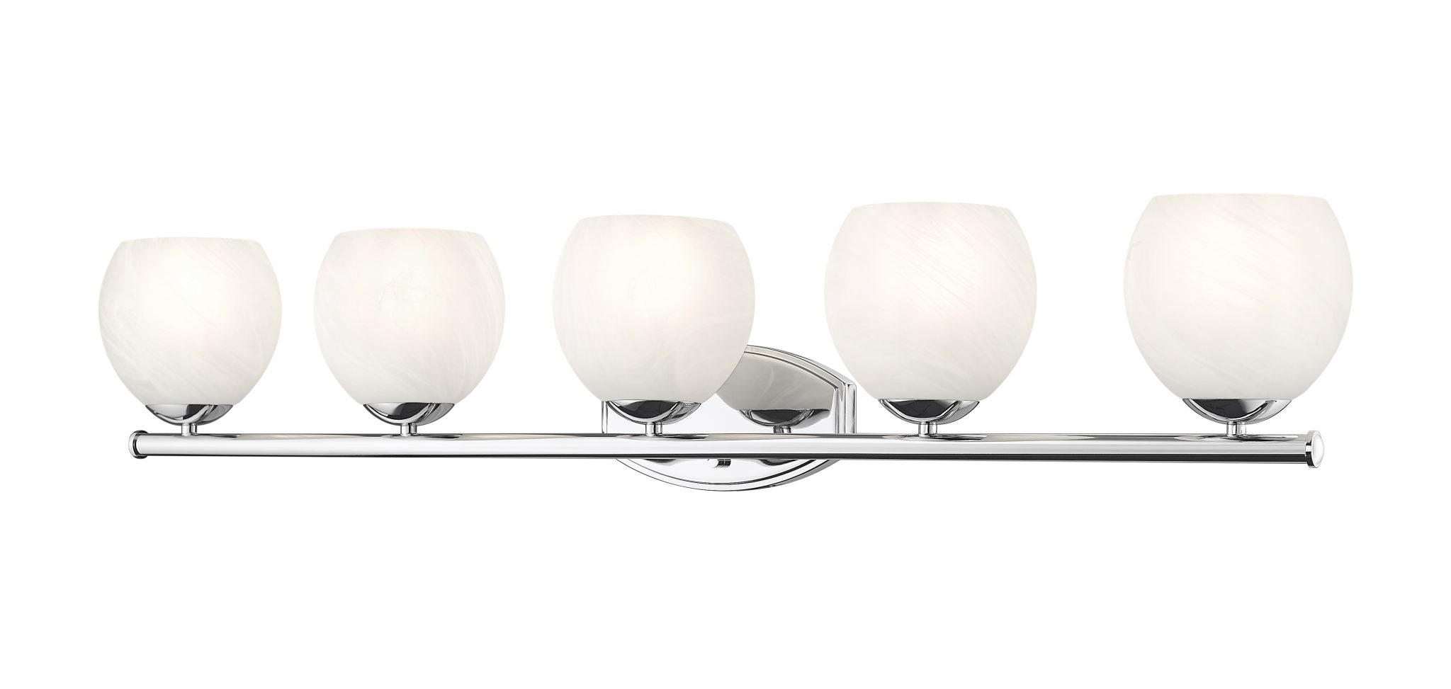 L’élégance se révèle dans chaque courbe de ce luminaire de salle de bain transitionnel à cinq lumières. Ses abat-jour arrondis en verre épais, ornés d’un motif tourbillonnant blanc opaque, diffusent une lumière douce et chaleureuse, idéale pour la toilette quotidienne. Sa structure se compose d’une plaque murale incurvée, d’une barre droite et de détails métalliques incurvés, le tout dans une finition chromée brillante pour une élégance intemporelle.