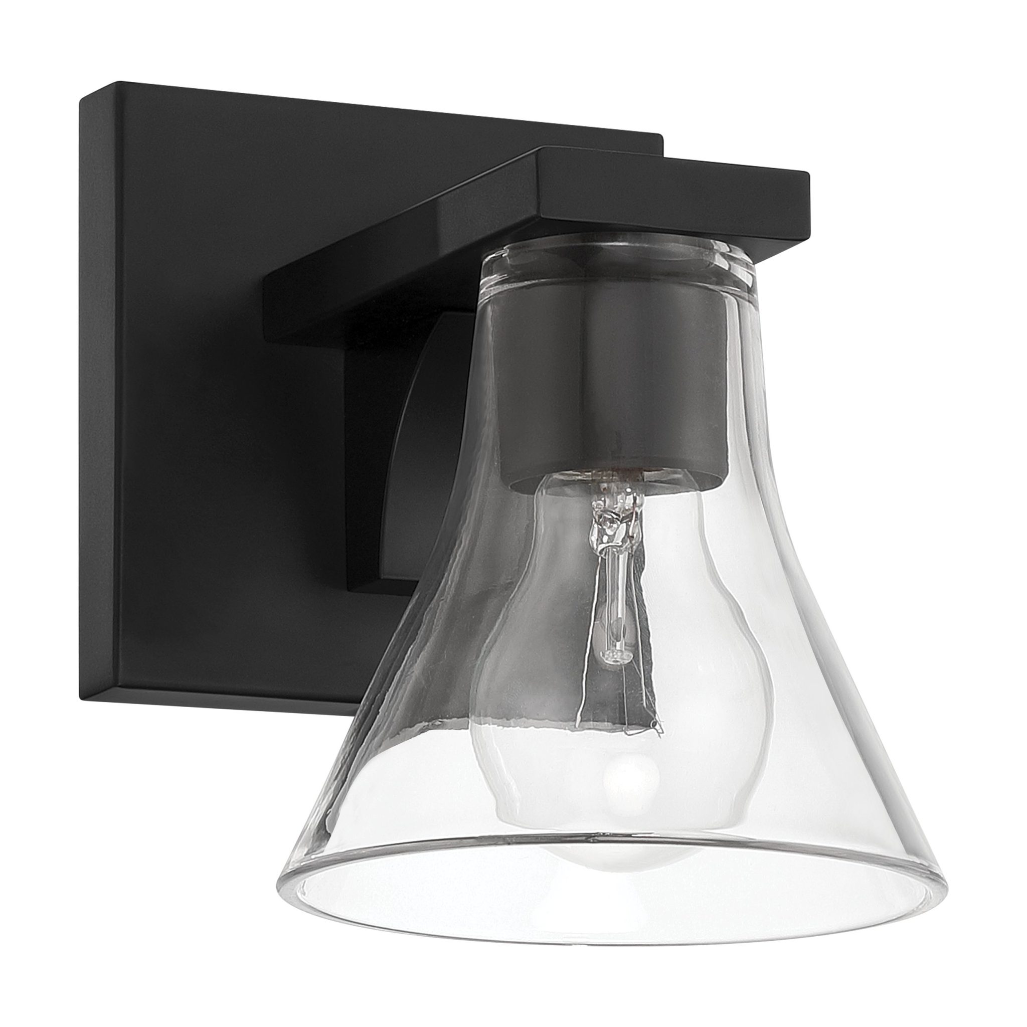 Découvrez Gilford murale de salle de bain 5 po à 1 lumière noir mat avec abat-jour en verre clair