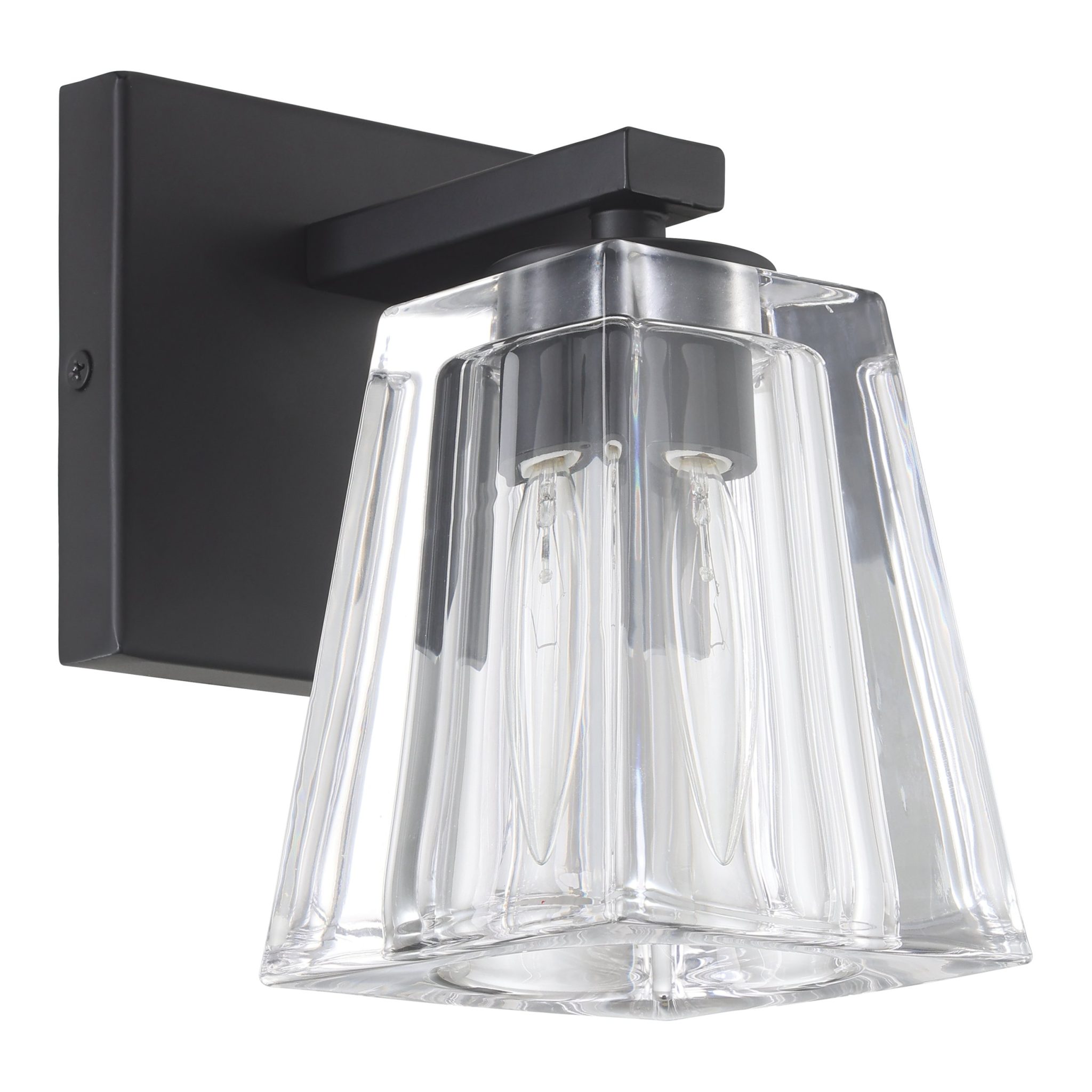 Découvrez Valentin murale de salle de bain 4 po à 1 lumière noir mat avec abat-jour en verre clair pressé
