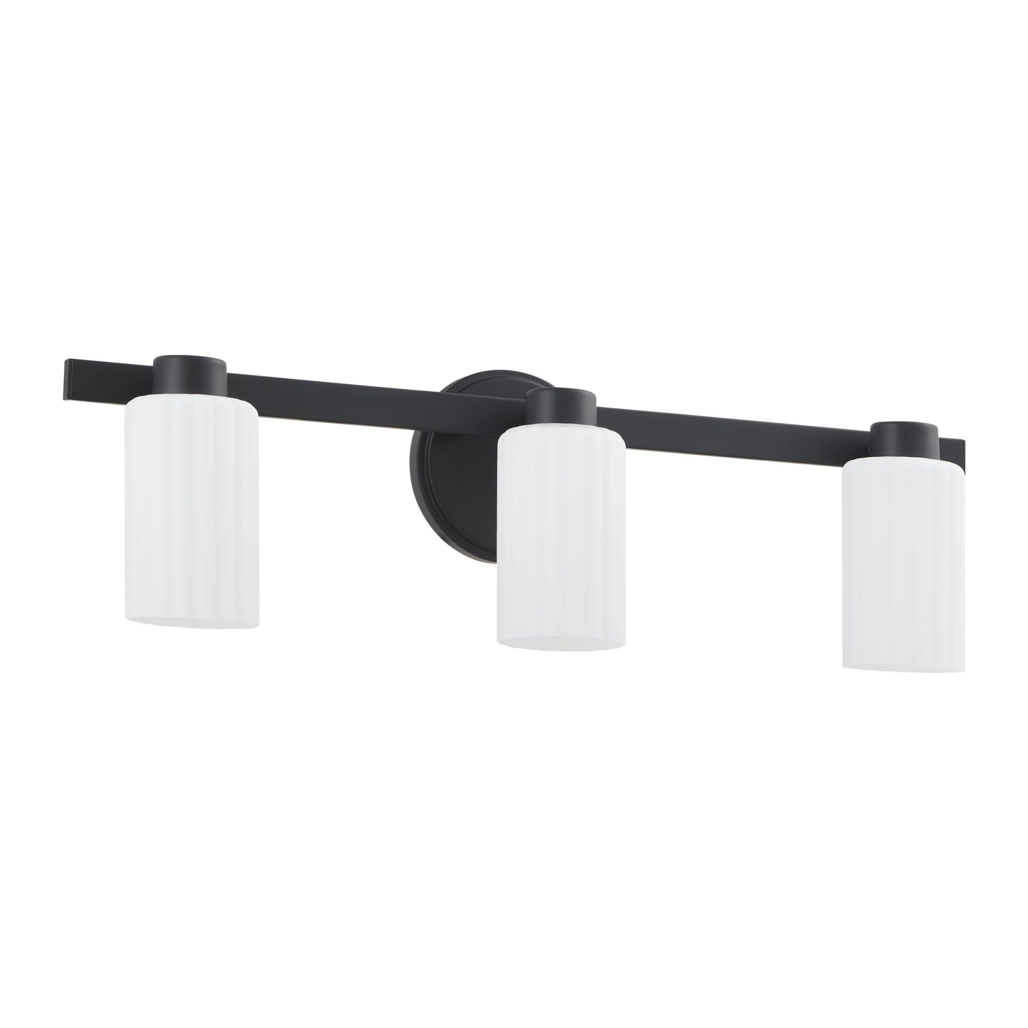 Découvrez Bedminster murale de salle de bain 24 po à 3 lumières noir mat avec abat-jours en verre opale gravé nervuré