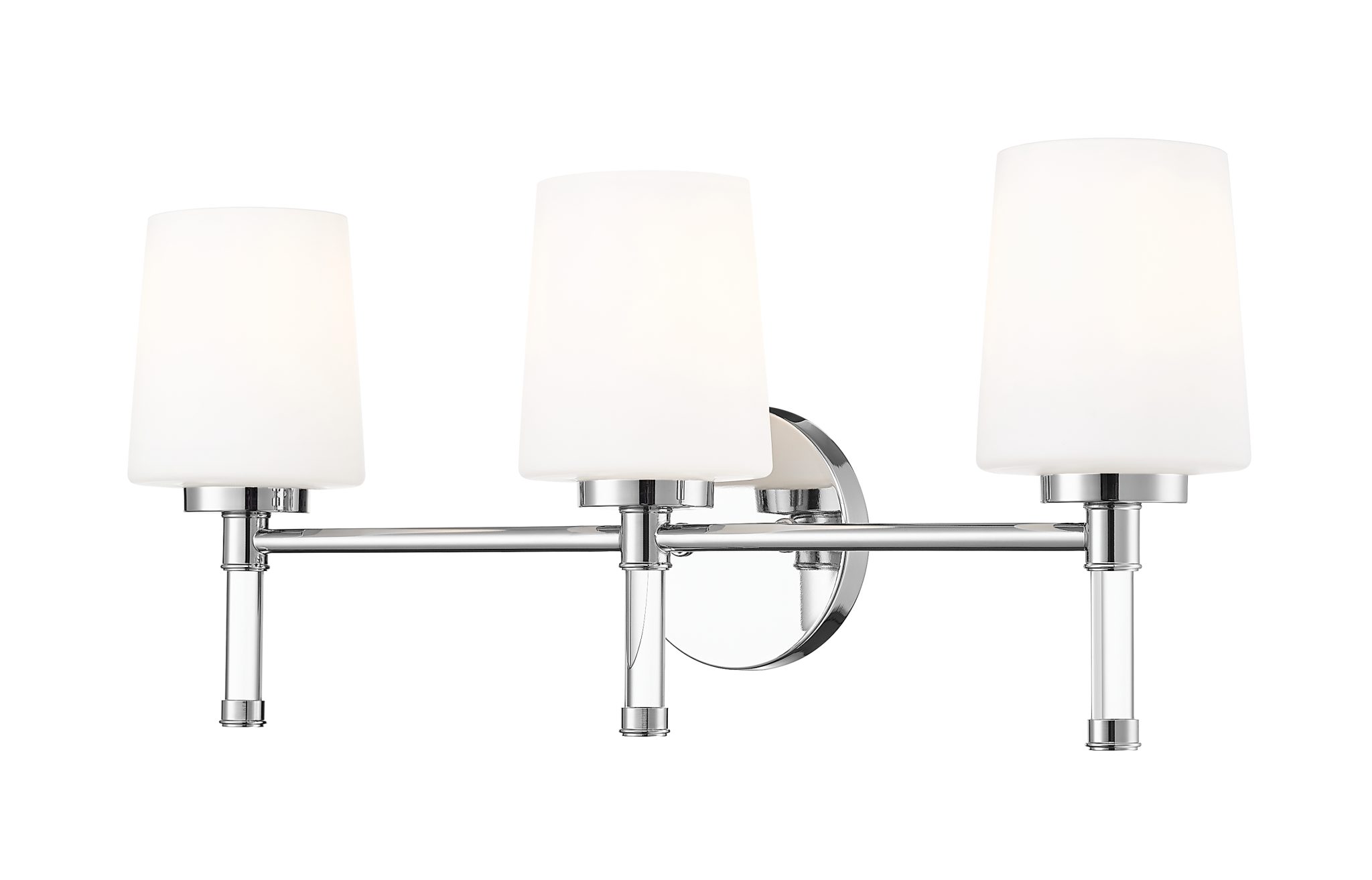 Le métal brillant de cette applique chromée à trois lumières lui confère une allure élégante et miroitante, diffusant la lumière dans la pièce et sublimant instantanément l’espace coiffeuse. Des accents de cristal sous chaque abat-jour captent la lumière, tandis que le verre opale diffuse une luminosité douce, idéale pour se détendre en fin de journée. Installée au-dessus d’un large lavabo ou d’un meuble-lavabo suspendu, cette applique rayonnante harmonise robinetterie, accessoires et miroirs encadrés en un ensemble urbain et raffiné.