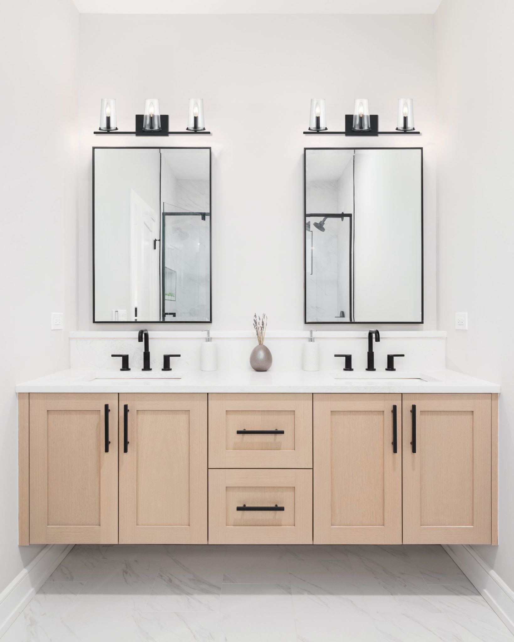 La collection de murales de salle de bain Jared trouve son élégance dans la sobriété. Un cadre épuré soutient des abat-jours en verre clair à effilement inversé, leurs formes simples créant un dialogue entre la tradition et le design moderne. Équilibrée et polyvalente, la beauté discrète de Jared s’harmonise parfaitement avec une grande variété d’intérieurs.