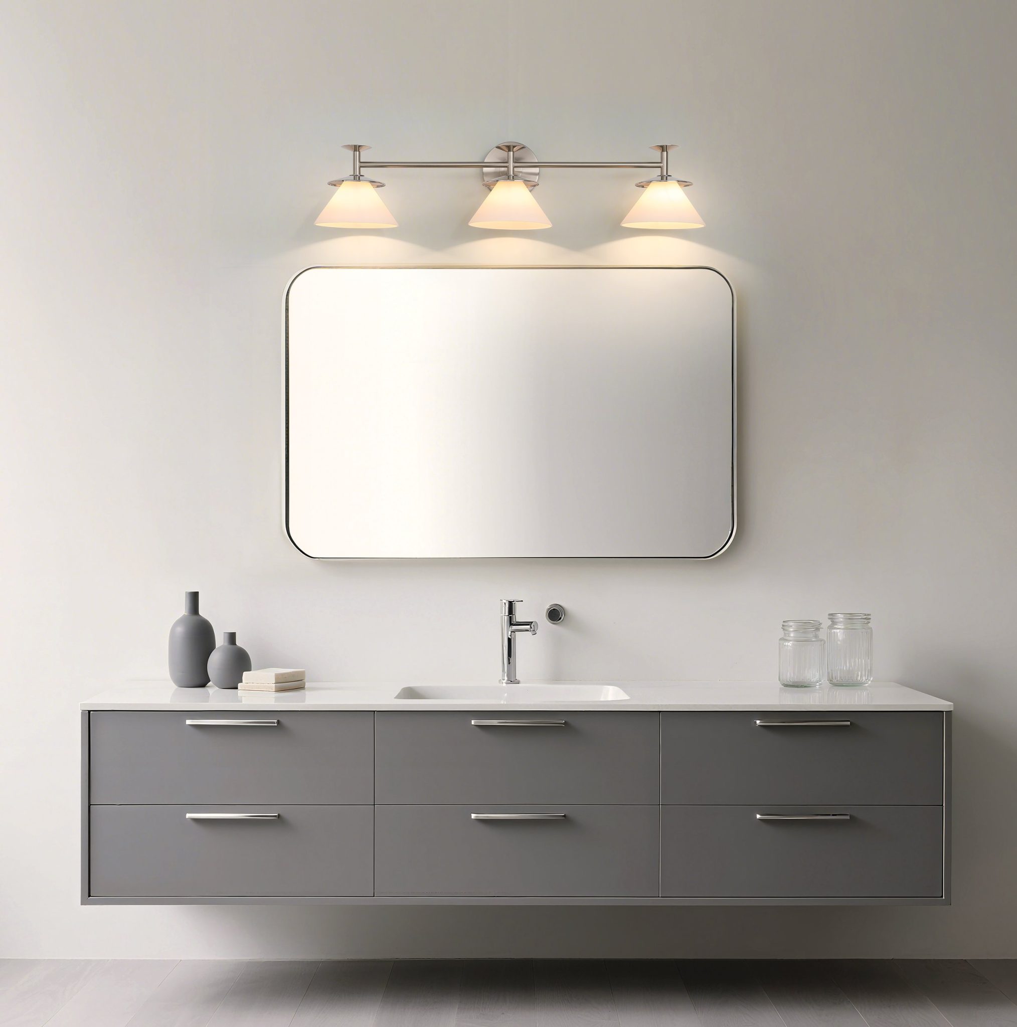 Découvrez Tremolo murale de salle de bain 33 po à 3 lumières nickel brossé et