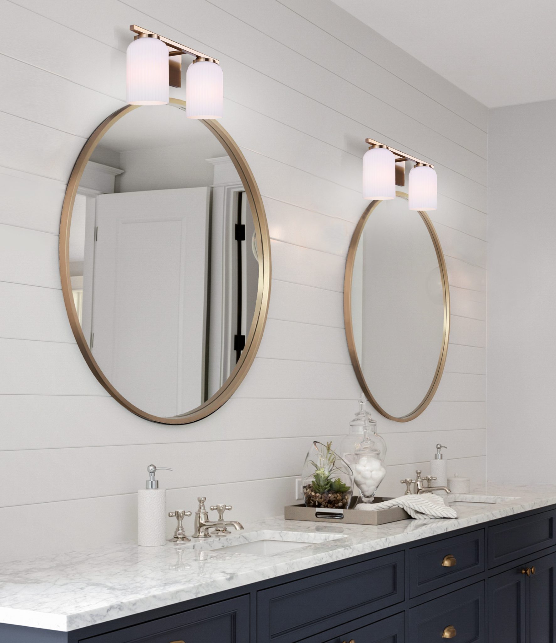 L’applique murale BRAM à deux lumières, finition or chaud, apporte une touche de luxe discret et un style raffiné aux petits espaces. Ses abat-jour plats en verre opale côtelé diffusent une lumière douce, créant une ambiance flatteuse, idéale pour éclairer le miroir de la salle de bain et pour les gestes du quotidien. Avec sa largeur de 32 cm, cette applique est parfaitement adaptée aux salles d’eau, aux lavabos simples ou aux petits miroirs, ajoutant une note d’élégance sans encombrer l’espace. Conçue pour deux ampoules de type A de 60 W, elle offre un éclairage fonctionnel empreint de modernité et de sophistication. Résistante à l’humidité et conçue pour une utilisation en salle de bain, elle est également dotée du système Easy Connect pour une installation facile. L’applique BRAM à deux lumières sublime les intérieurs de style transitionnel et contemporain d’une élégance discrète.