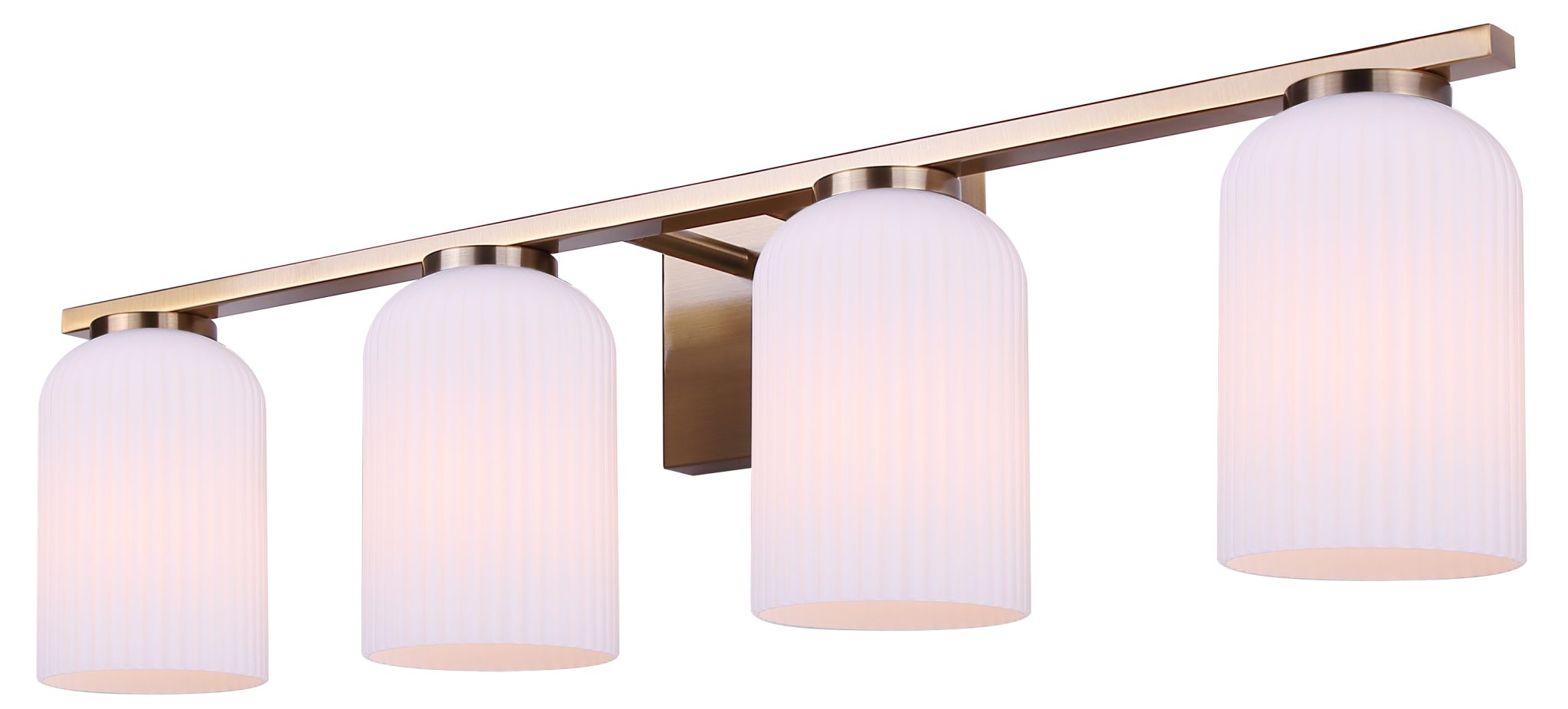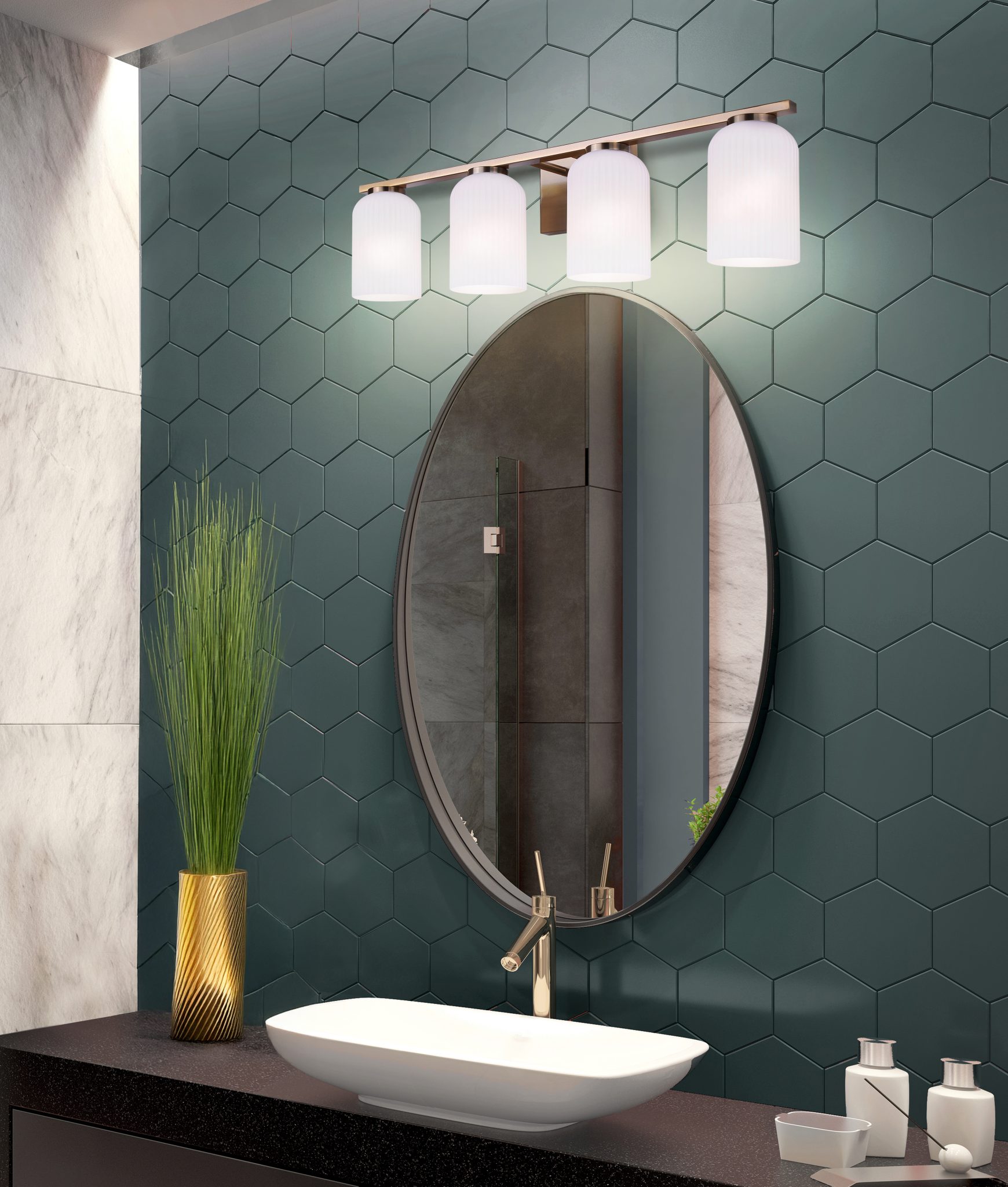 L’applique murale BRAM à 4 lumières, finition or chaud, allie un luxe discret à une grande praticité au quotidien, ce qui en fait un choix judicieux pour les particuliers comme pour les professionnels du bâtiment. Ses abat-jour plats en verre opale nervuré diffusent une lumière douce et équilibrée, créant un éclairage à la fois raffiné et fonctionnel. Avec une largeur de 74 cm, ce luminaire est parfaitement adapté aux vasques simples ou doubles, offrant une luminosité optimale tout en sublimant le style de la salle de bain. Conçue pour quatre ampoules de 60 W de type A, elle garantit une performance fiable et robuste, digne des plus grands professionnels, et un charme intemporel. Adaptée aux environnements humides pour une sécurité maximale dans la salle de bain et équipée du système d’installation Easy Connect, l’applique BRAM offre une fonctionnalité simple et un design polyvalent à un prix qui facilite la modernisation de votre salle de bain.