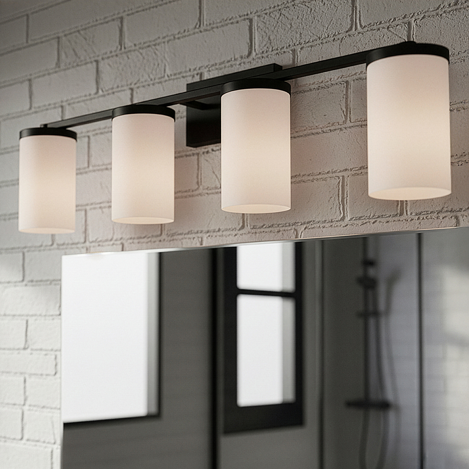 L’applique murale BRITTON à 4 lumières allie style moderne et fiabilité, idéale pour tous vos projets de salle de bain, qu’il s’agisse de rénovation ou d’aménagement. Sa finition noire mate et ses quatre abat-jour en verre opale créent des lignes épurées et contemporaines tout en offrant un éclairage uniforme et lumineux, parfait pour la toilette, le maquillage ou vos gestes quotidiens. Conçue pour des ampoules de type A de 100 W (non incluses), l’applique BRITTON diffuse une lumière abondante tout en conservant un profil élégant et polyvalent. Mesurant 71 cm de large, 24,5 cm de haut et 15,5 cm de profondeur, elle s’installe facilement au-dessus des lavabos simples ou doubles et convient à différentes dimensions de salles de bain. Robuste et facile à installer, cette applique est idéale pour les projets de bricolage comme pour les travaux professionnels. Avec son équilibre parfait entre élégance moderne et fonctionnalité, l’applique BRITTON sublime tout espace grâce à son style raffiné et sa fiabilité à toute épreuve.