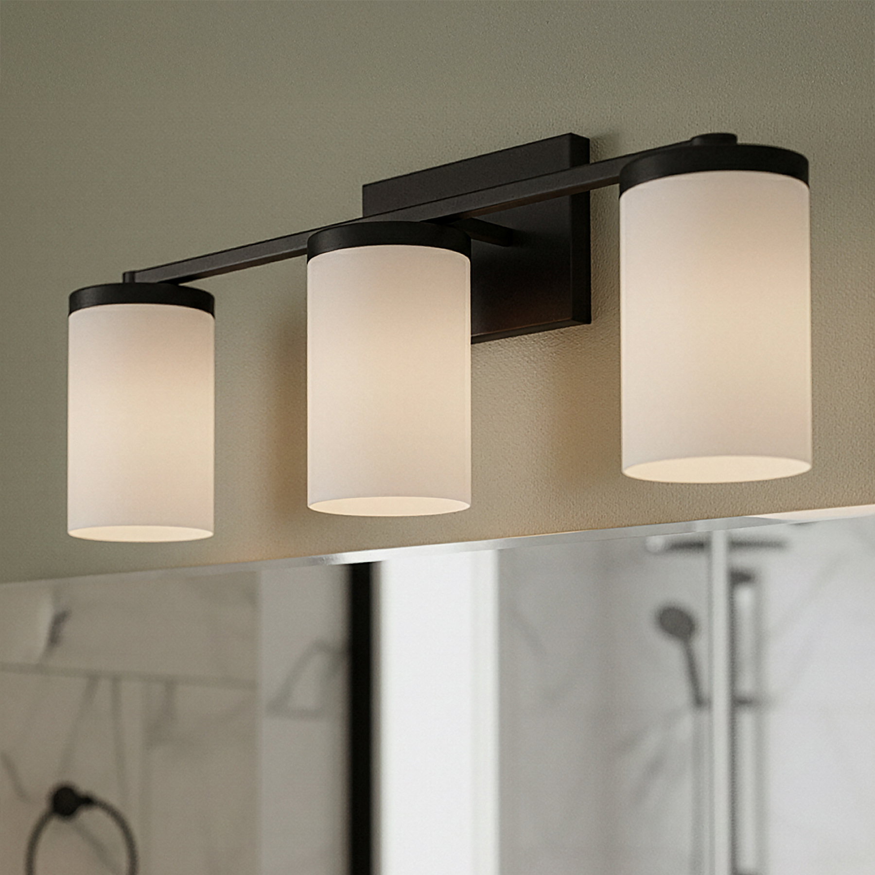 L’applique murale BRITTON à 3 lumières allie style moderne et fiabilité, idéale pour tous vos projets de salle de bain, qu’il s’agisse de rénovation ou d’aménagement. Sa finition noire mate et ses trois abat-jour en verre opale créent des lignes épurées et contemporaines tout en offrant un éclairage uniforme et lumineux, parfait pour la toilette, le maquillage ou vos gestes quotidiens. Conçue pour des ampoules de type A de 100 W (non incluses), l’applique BRITTON diffuse une lumière abondante tout en conservant un profil élégant et polyvalent. Mesurant 53 cm de large, 24,5 cm de haut et 15,5 cm de profondeur, elle s’installe facilement au-dessus des lavabos simples ou doubles et convient à différentes tailles de salles de bain. Robuste et facile à installer, cette applique est idéale pour les projets de bricolage comme pour les travaux professionnels. Avec son équilibre parfait entre élégance moderne et fonctionnalité, l’applique BRITTON sublime tout espace grâce à son style raffiné et sa fiabilité à toute épreuve.