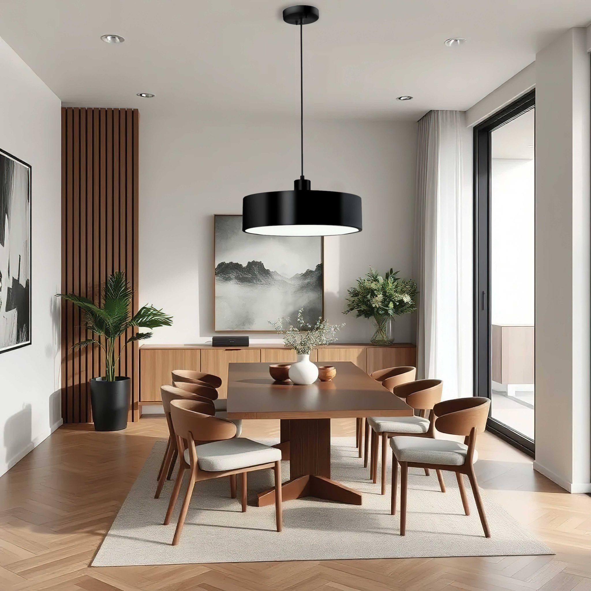 Luminaire suspendu DEL fini noir – 15 » Diamètre – 4 » Hauteur – 78 » Hauteur max. – 24W 2400 Lumens 5CCT
