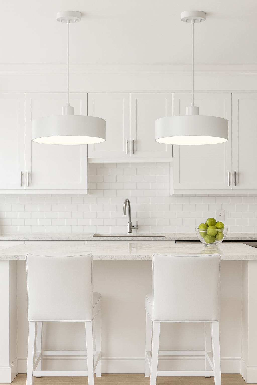 Luminaire suspendu DEL fini blanc – 15 » Diamètre – 4 » Hauteur – 78 » Hauteur max. – 24W 2400 Lumens 5CCT