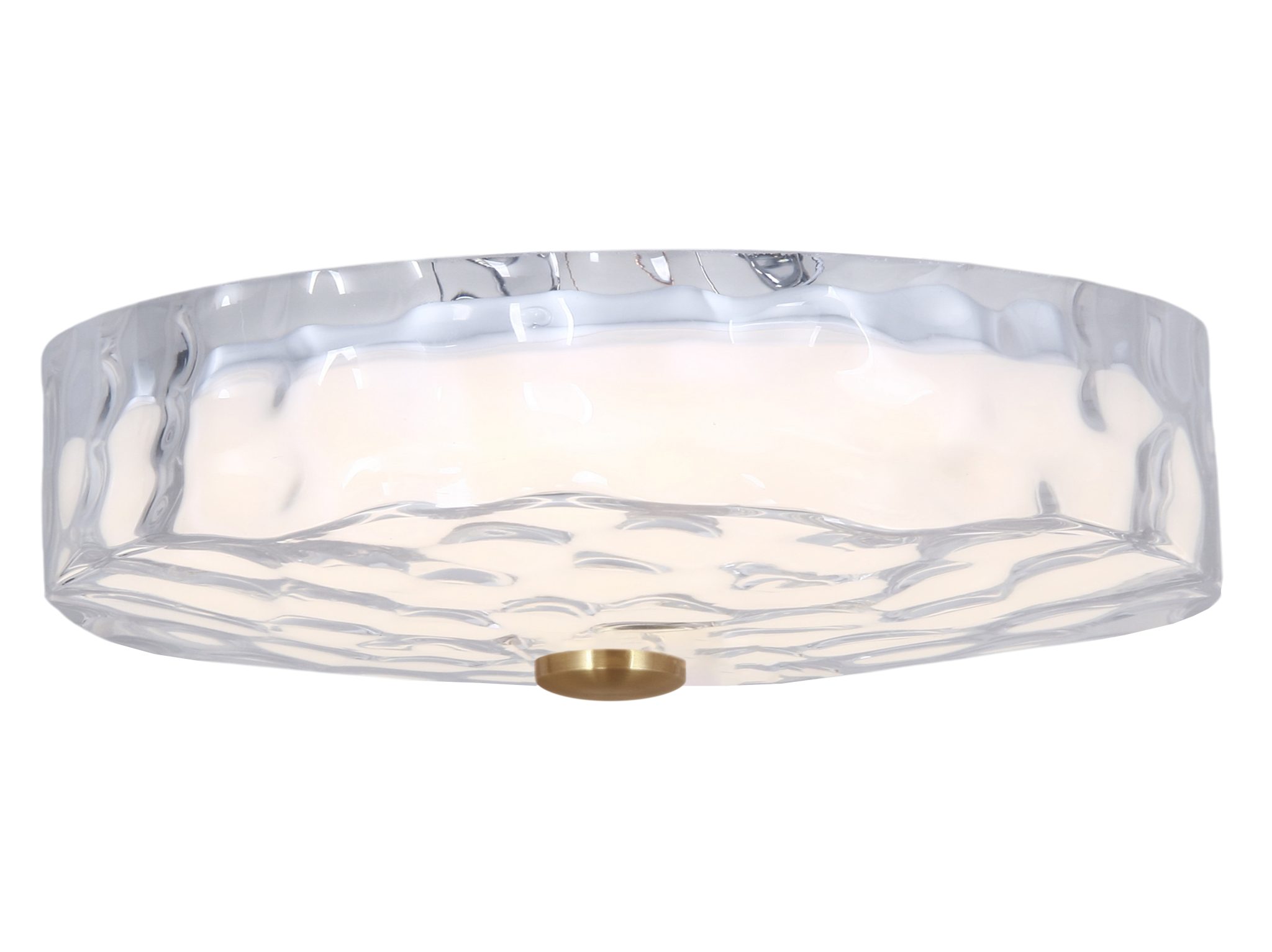 Découvrez DULCE Plafonnier DEL, fini laiton vieilli avec verre clair ondulé, 3,5po Hauteur, 15po Diamètre, 30W DEL 900 Lumens, 3000K