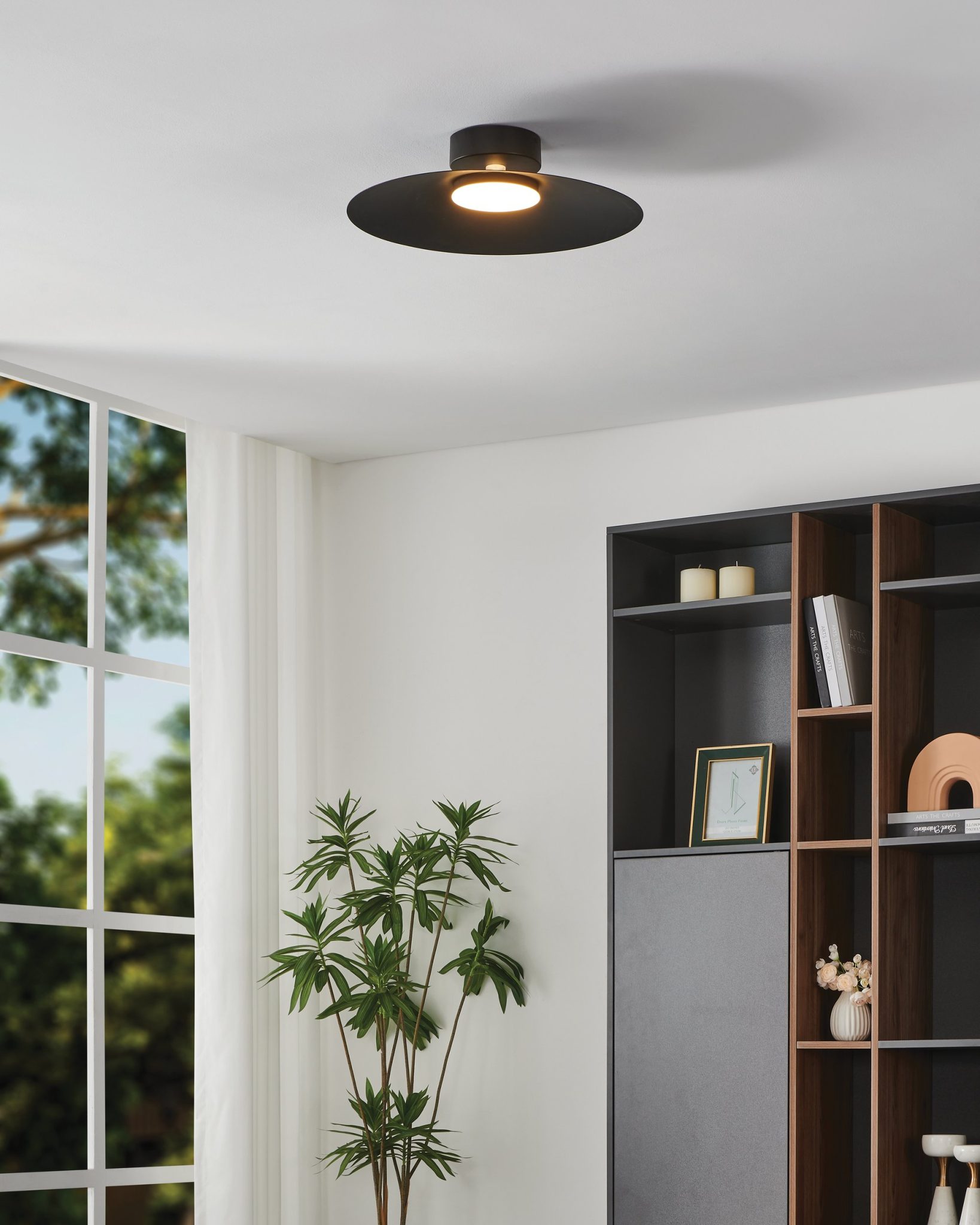 Découvrez le Conomavilla plafonnier DEL 3CCT 17 po à 1 lumière noir avec abat-jour en métal noir