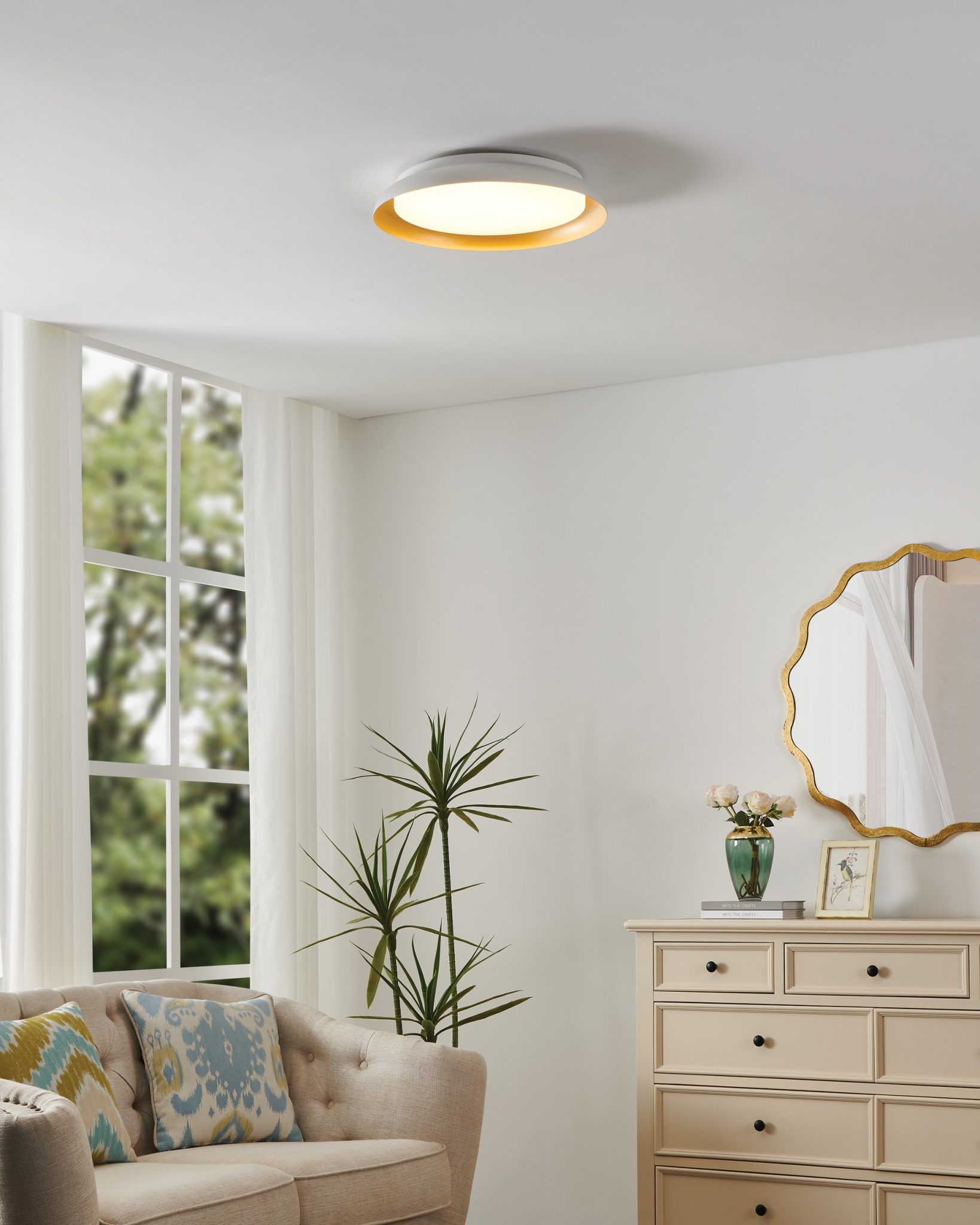 Découvrez le Sebio plafonnier DEL 3CCT 18 po à 1 lumière blanc et or