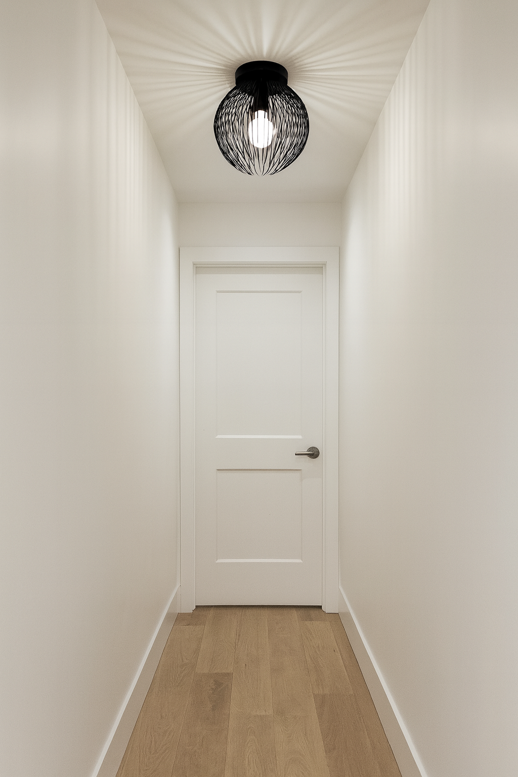 Compact et spectaculaire à la fois, ce plafonnier formé de tiges métalliques diffuse une lumière à 360° et crée de beaux jeux d’ombres. Son design aérien n’alourdit pas la pièce et ajoute une touche moderne au hall d’entrée, au corridor, à la chambre ou au coin lecture.