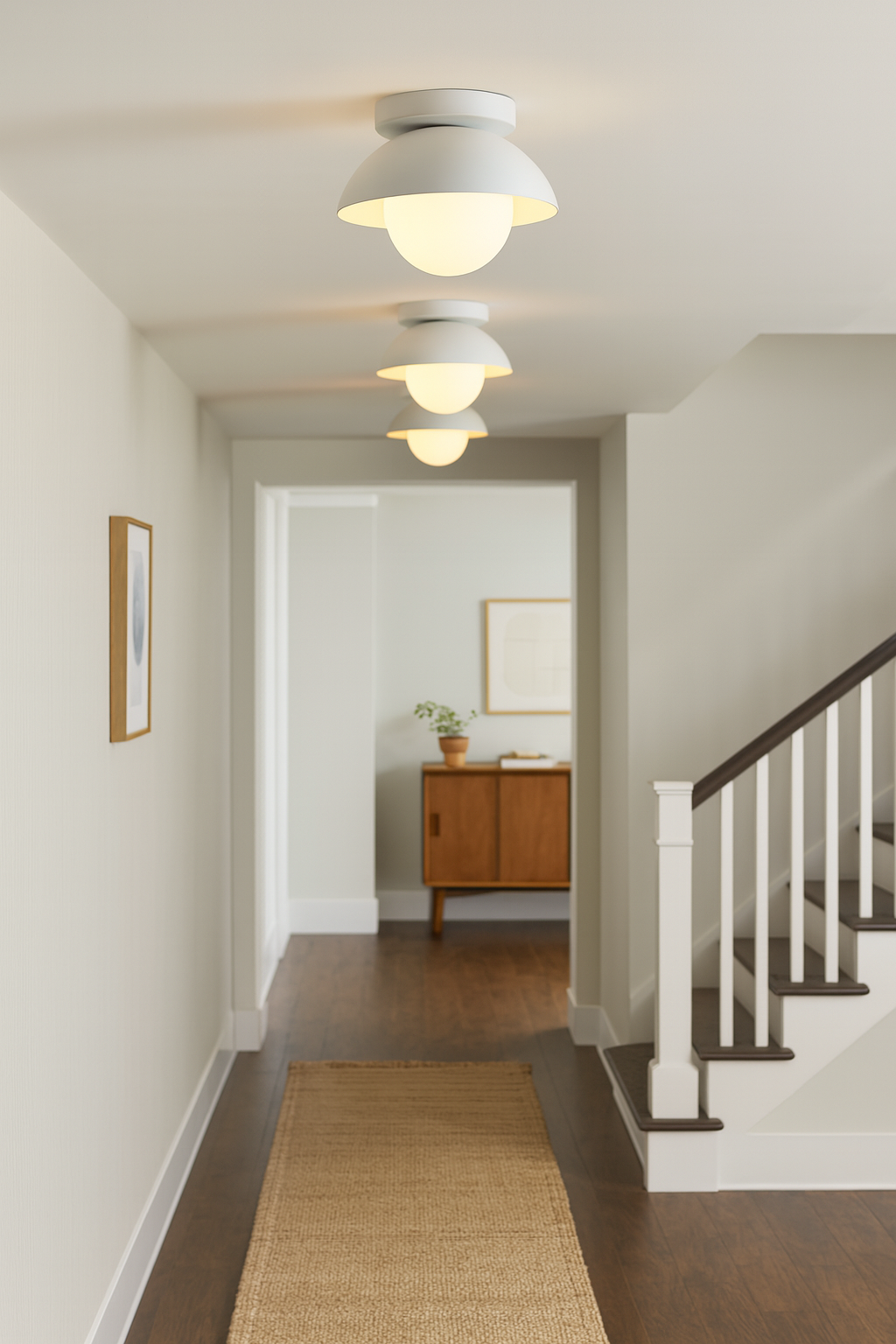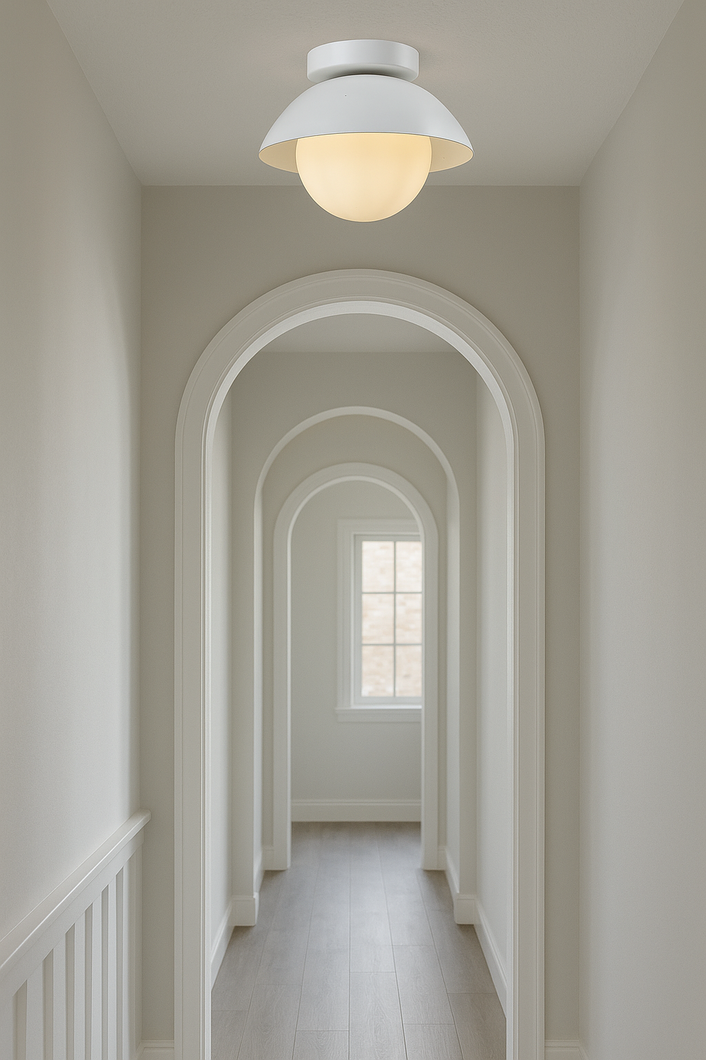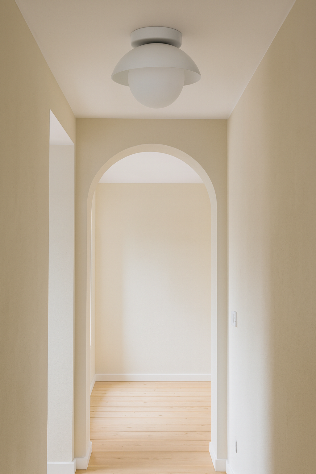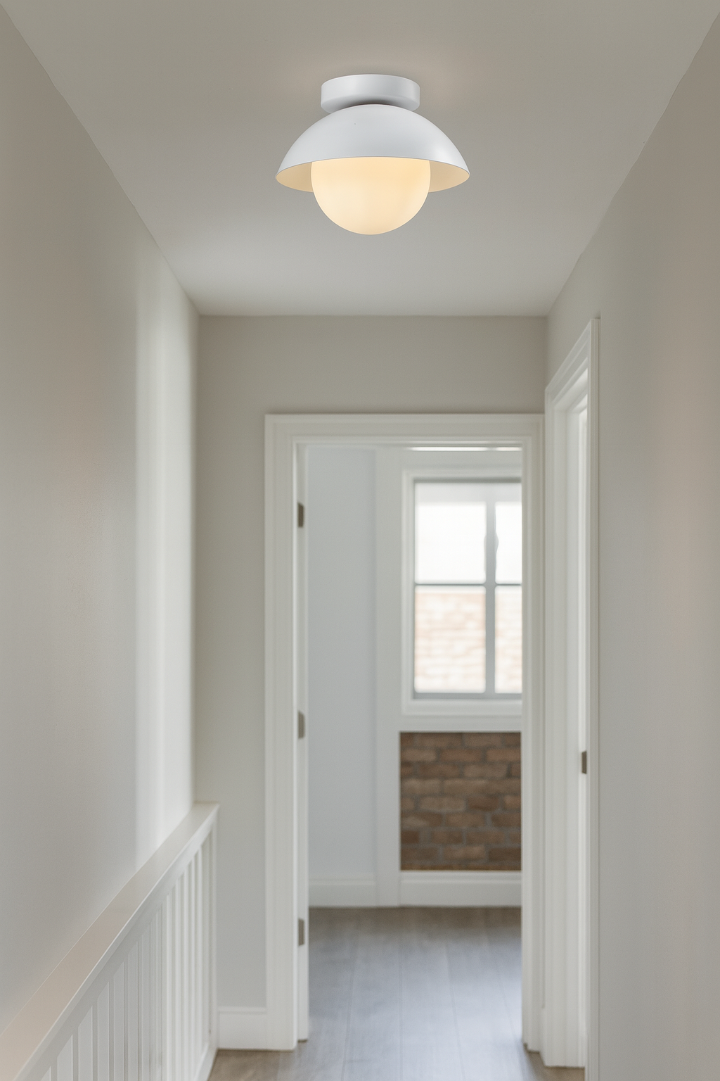 Grâce à son design minimaliste inspiré du style scandinave, cette collection s’intègre aussi bien dans un décor contemporain que classique. Offerte en plusieurs configurations, plafonnier, suspension simple ou linéaire à deux ou trois dômes, elle s’adapte à tous les espaces : cuisine, salle à manger, corridor ou chambre. Le verre opalin diffuse une lumière douce et chaleureuse, idéale pour créer une ambiance conviviale et accueillante.