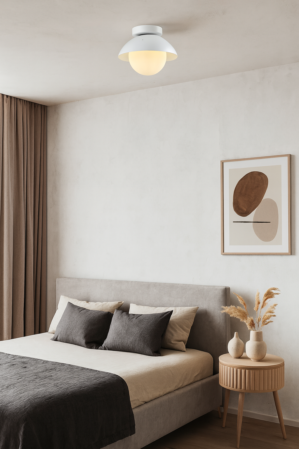 Ce plafonnier allie simplicité et élégance grâce à son design épuré. Son abat-jour arrondi diffuse la lumière de façon homogène, mettant en valeur le globe givré qui apporte une touche contemporaine et adoucit l’éclairage. Parfait pour les espaces modernes ou minimalistes, il s’intègre facilement dans une cuisine, un hall d’entrée, une chambre à coucher ou encore un bureau.